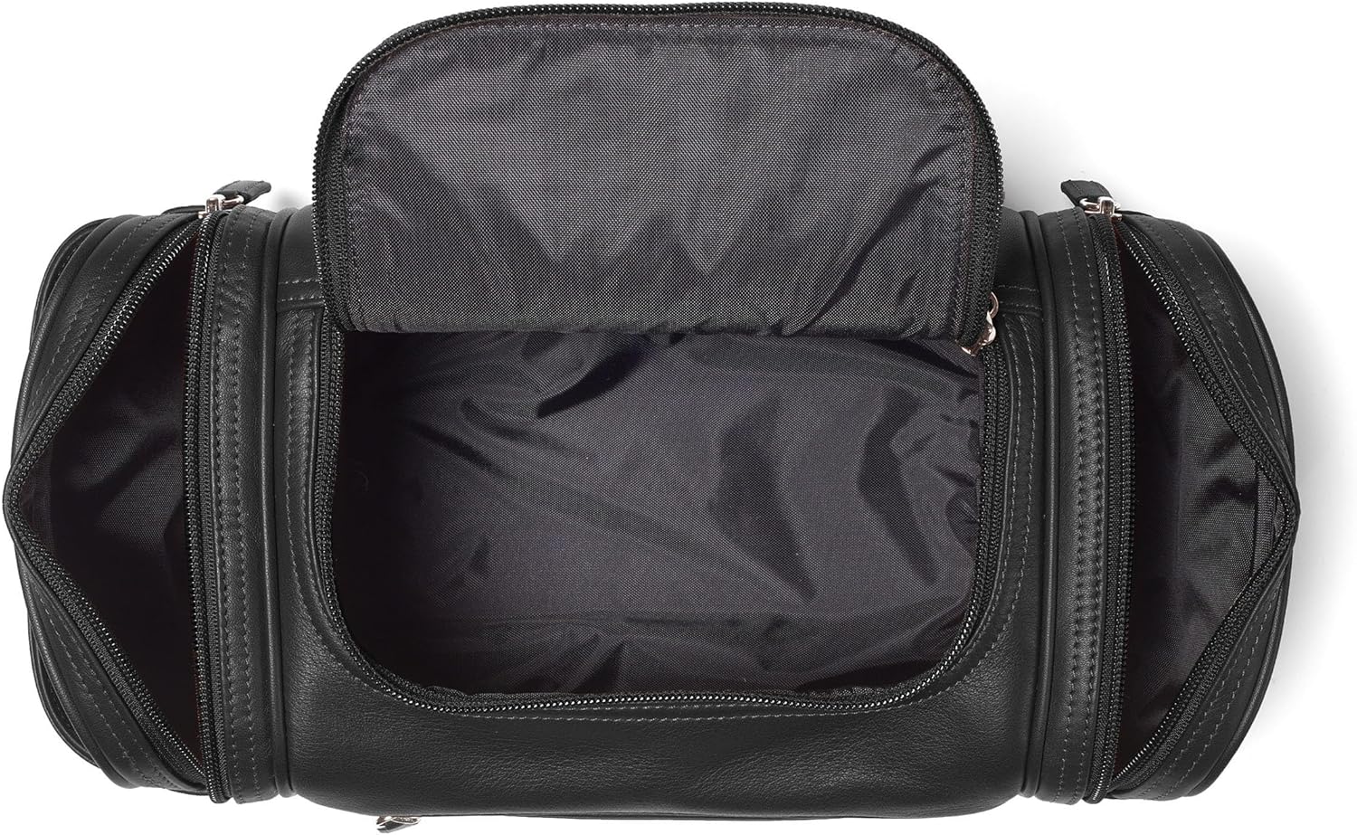 Leatherology Black Onyx Multi Pocket Toiletry Bag - Main top zippered compartment with additional side and front zippered pockets