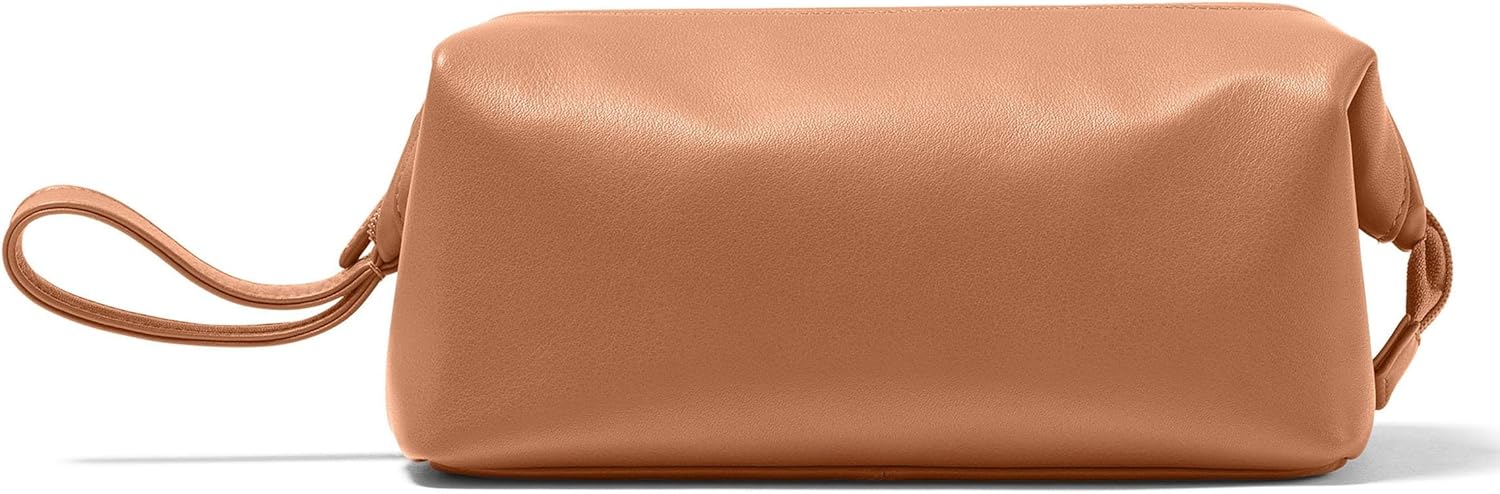 Leatherology Cognac Framed Toiletry Bag - Wide-mouth zippered opening, interior and exterior zippered compartments, compact and functional