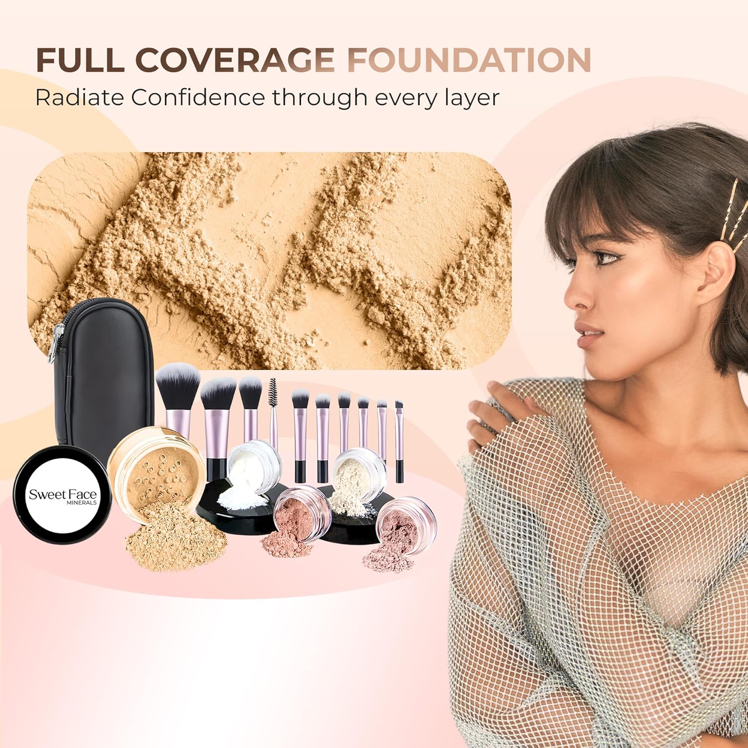 • 【 PERFECTLY SIZED FOR BEGINNERS & TRIAL USE 】: This kit is thoughtfully designed with smaller 5 g jars for blush, bronzer, and finishing powder, and a larger 20 g foundation jar so you can explore and experience Sweet Face Minerals before committing to full-size products. It’s ideal for those new to makeup, learning application techniques, doing makeup occasionally, or needing compact, travel-friendly jars. Please note: these are intentionally smaller starter sizes, not full-size products.