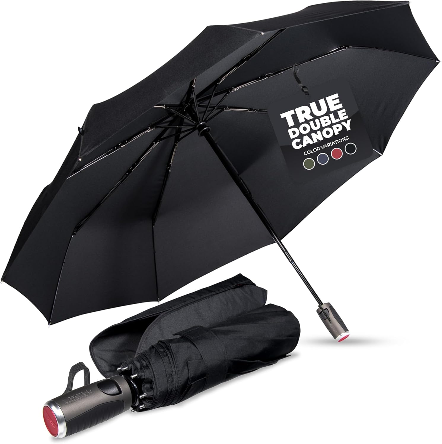 • SUPERIOR WIND RESISTANCE: Engineered with a true double canopy frame and vented design, the BLACK TRAVELER 45 FX2 withstands powerful gusts without inverting. Its heavy-duty nine-rib steel frame and tri-fold shaft provide maximum durability, ensuring you're protected during the harshest storms.