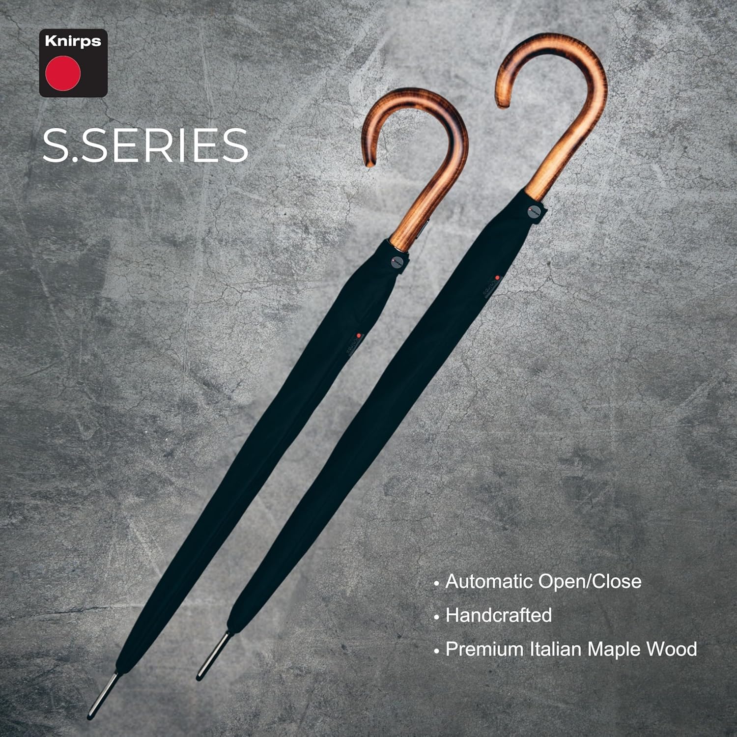 Knirps S.770 Long Automatic Stick Umbrella, Straight, Lightweight, Premium, Italian Maple Wood Handle