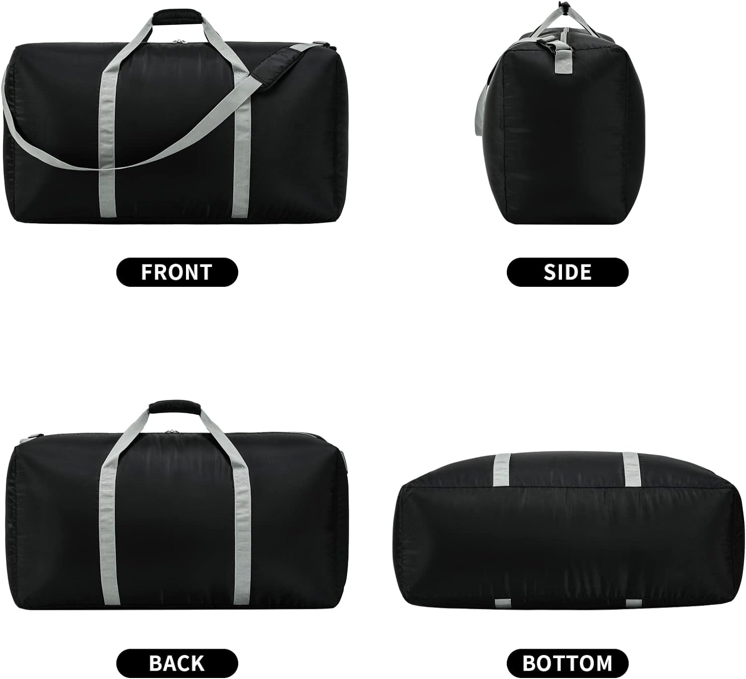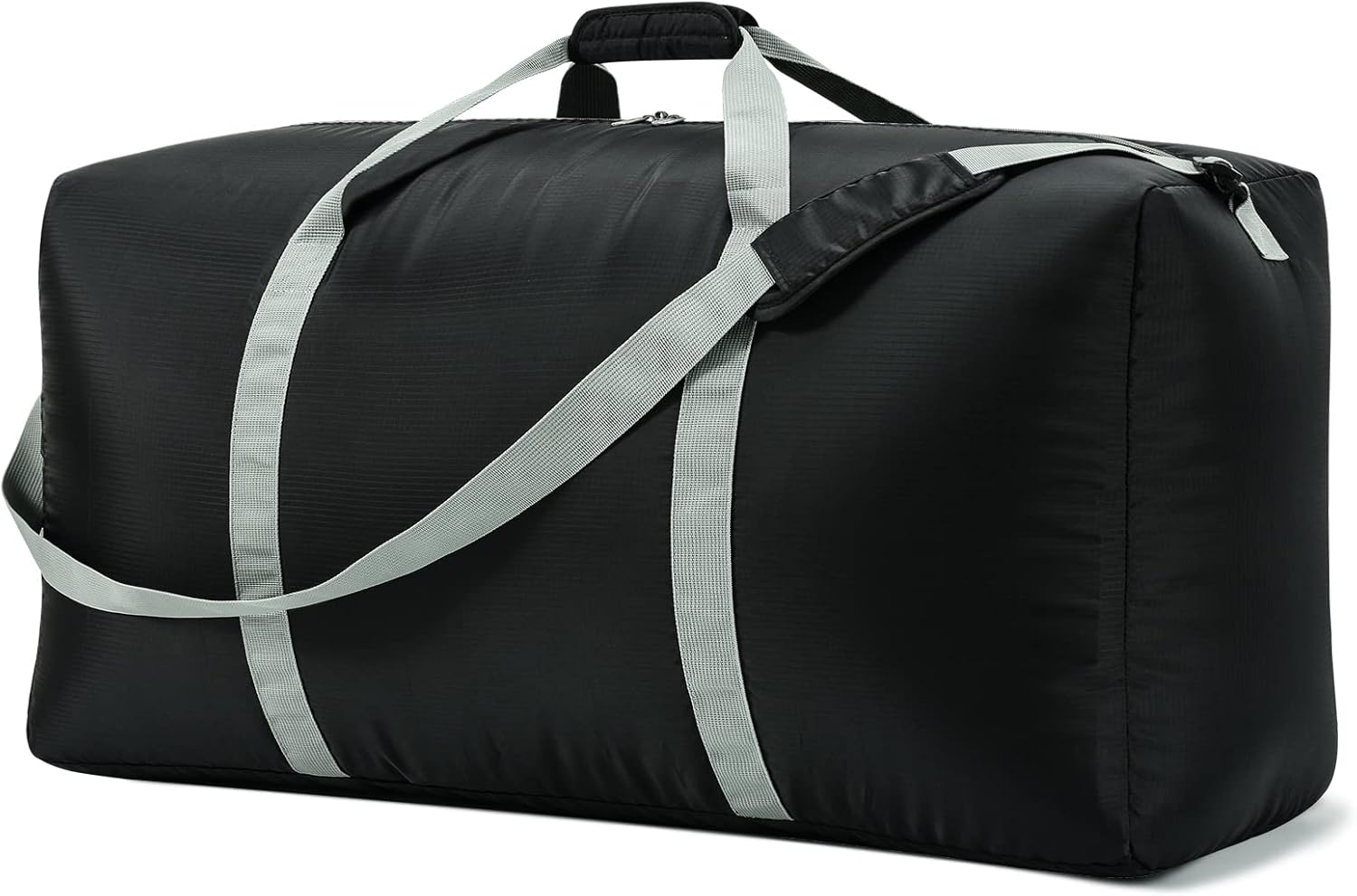 • LARGE CAPACITY FOLDABLE DUFFLE BAG FOR TRAVEL:Up to 105L capacity, dimension of this storage bag is 32.5"x 11.5" x 17", total weight is only 1.1lbs. It has 1 zippered main compartment with 1 inside pouch.