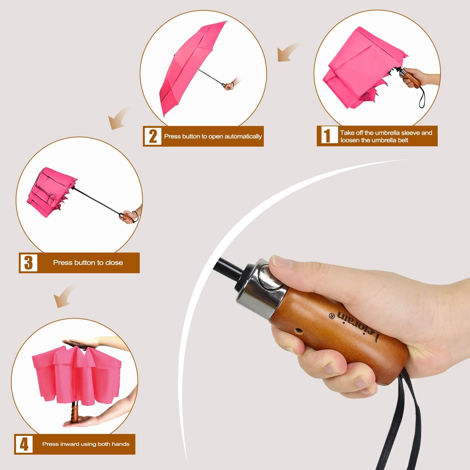 • Waterproof and Fabric and Luxury Real Wooden Handle: This umbrella is made of 210T fabric with a specialized Dupont Teflon coating, making it waterproof and fast-drying. Also, the ergonomic wood handle with finger-notches makes it comfortable to hold