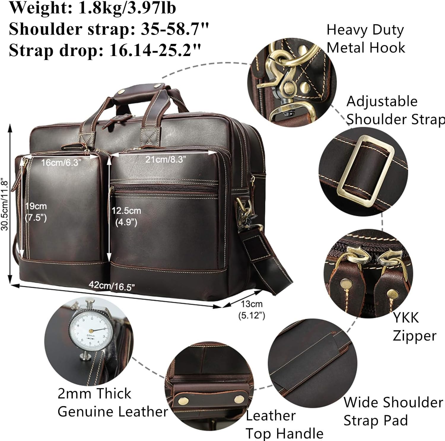 Leather Briefcase for Men Expandable Large 17 Inch Laptop Crossbody Shoulder Bag Business Travel Duffel Attache Case