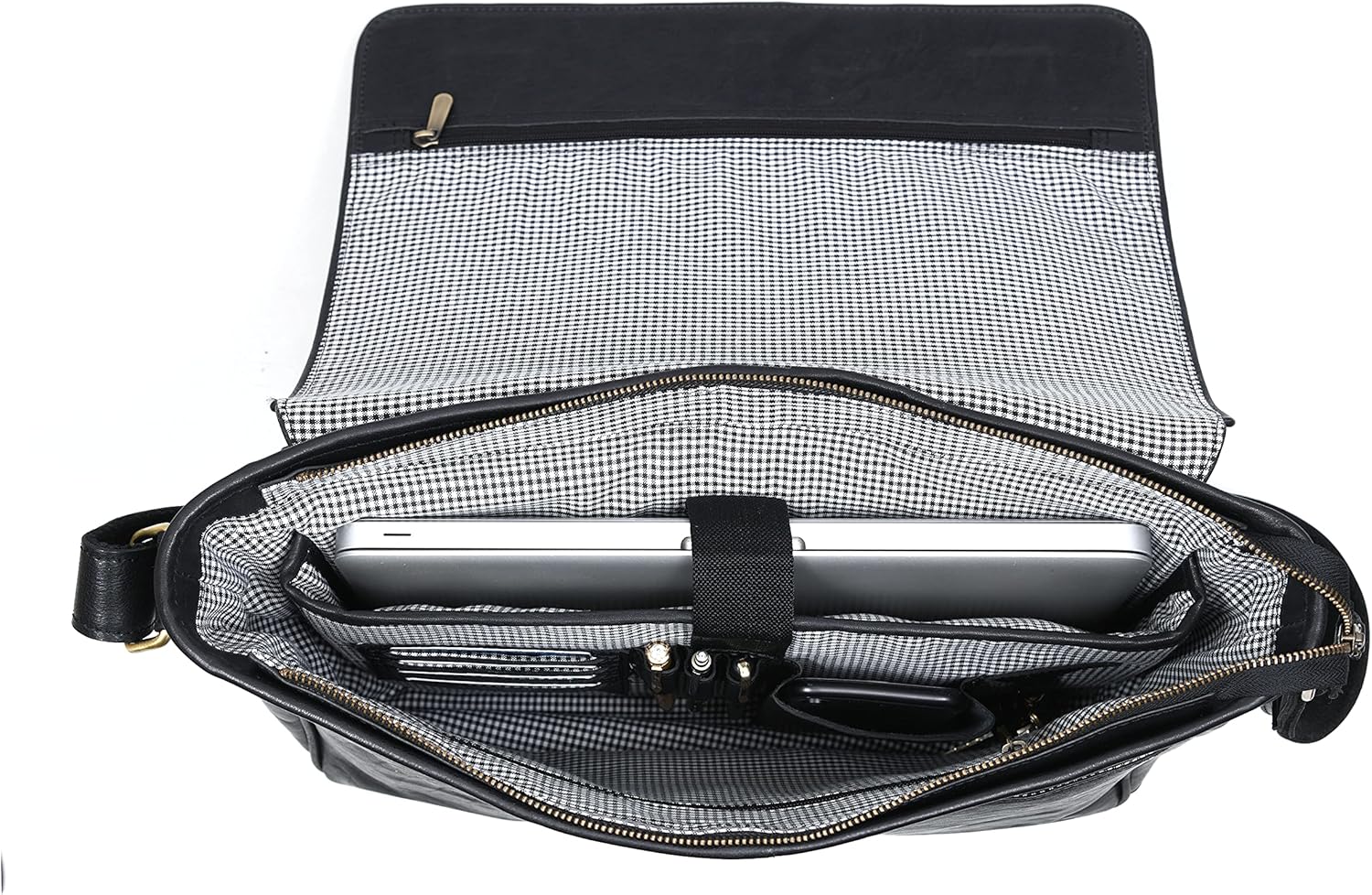 16" Crossbody Bag Leather Laptop Messenger Bag For Men with trolley sleeve for school office (Hickory)