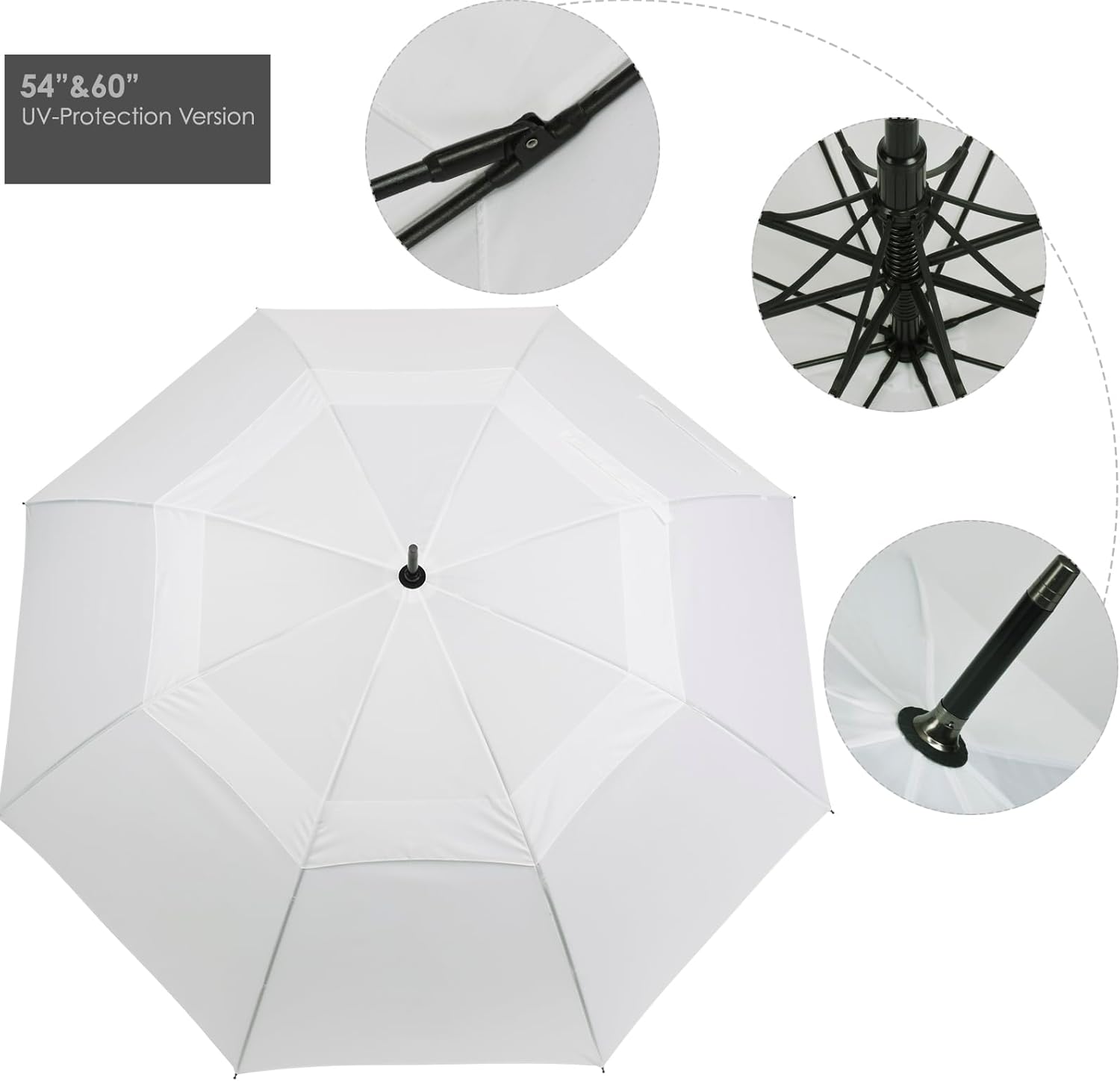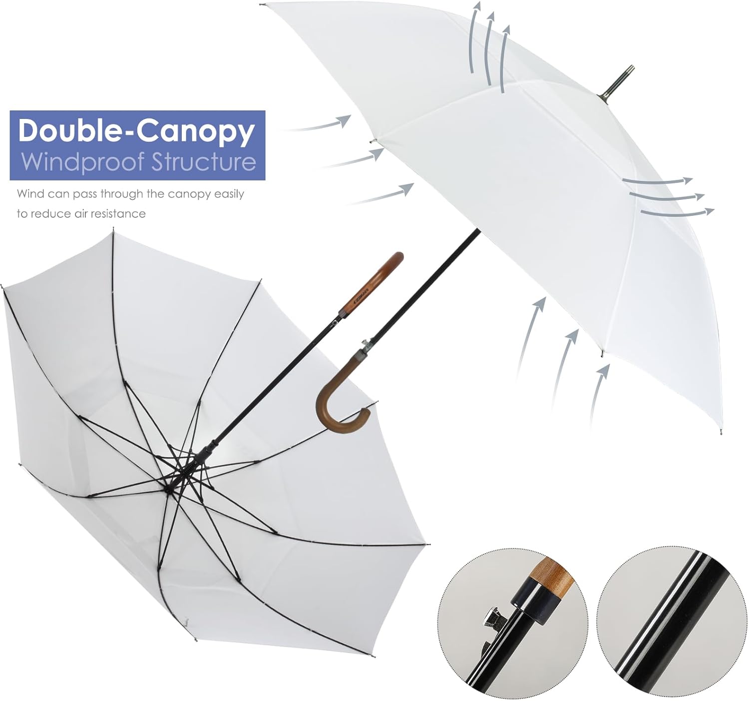 ZEKAR Wooden J-Handle Umbrella, 54/62 / 68 inch, UV & Classic Versions, Large Windproof Stick Umbrella, Auto Open for Men and Women Golf umbrella (white, 54”Black-pack-of-2)