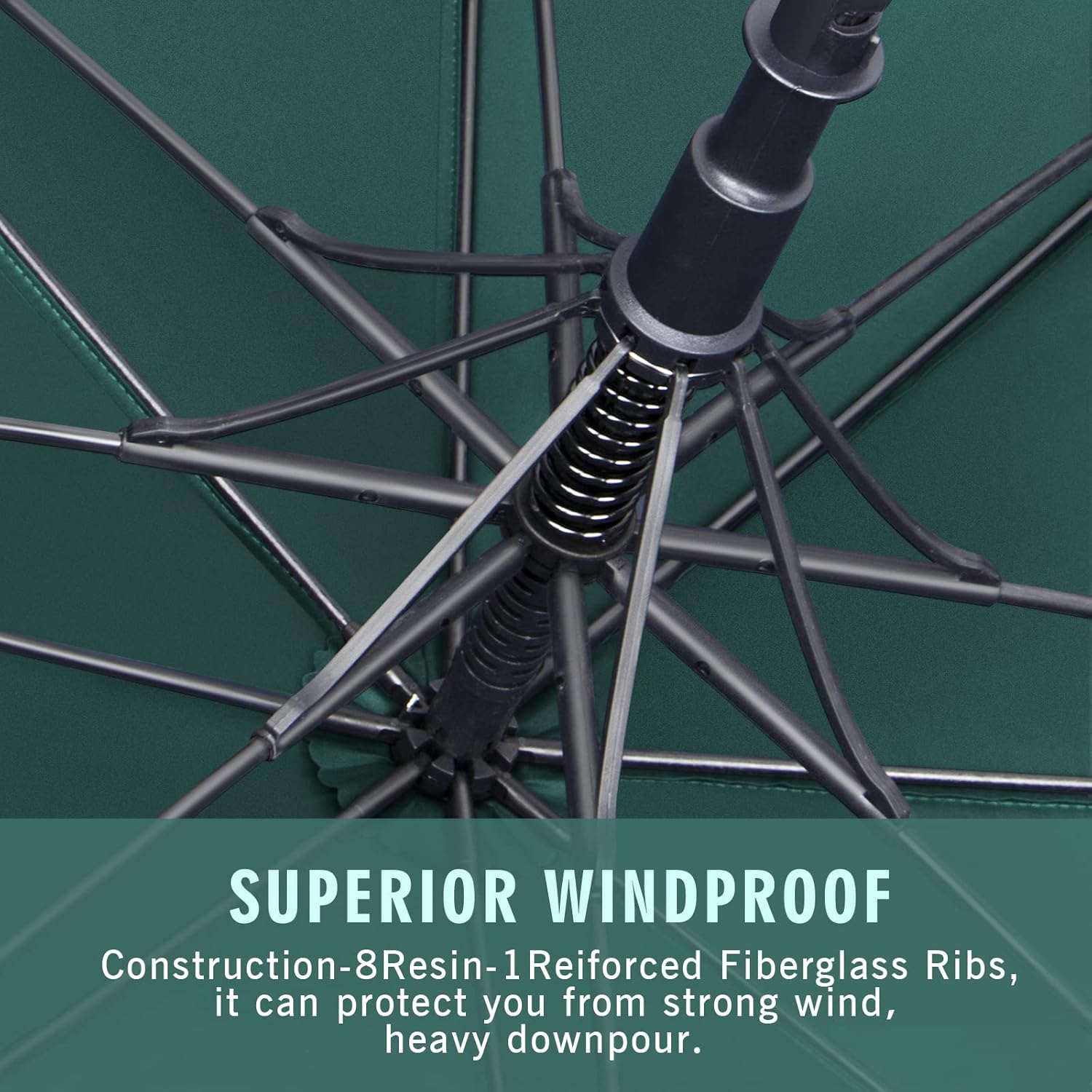 • TOUGH AND STRONG DOUBLE CANOPY GOLF UMBRELLA: The extra large golf umbrella is made of glass fiber with high toughness,which is strong.The golf umbrella double canopy vent design is adopted to weaken the wind and resist strong wind.Our golf push cart umbrella is like a tall and straight tree,standing upright with a waist pole,standing in the wind and rain with tenacious vitality,and welcoming wind and rain with the best posture