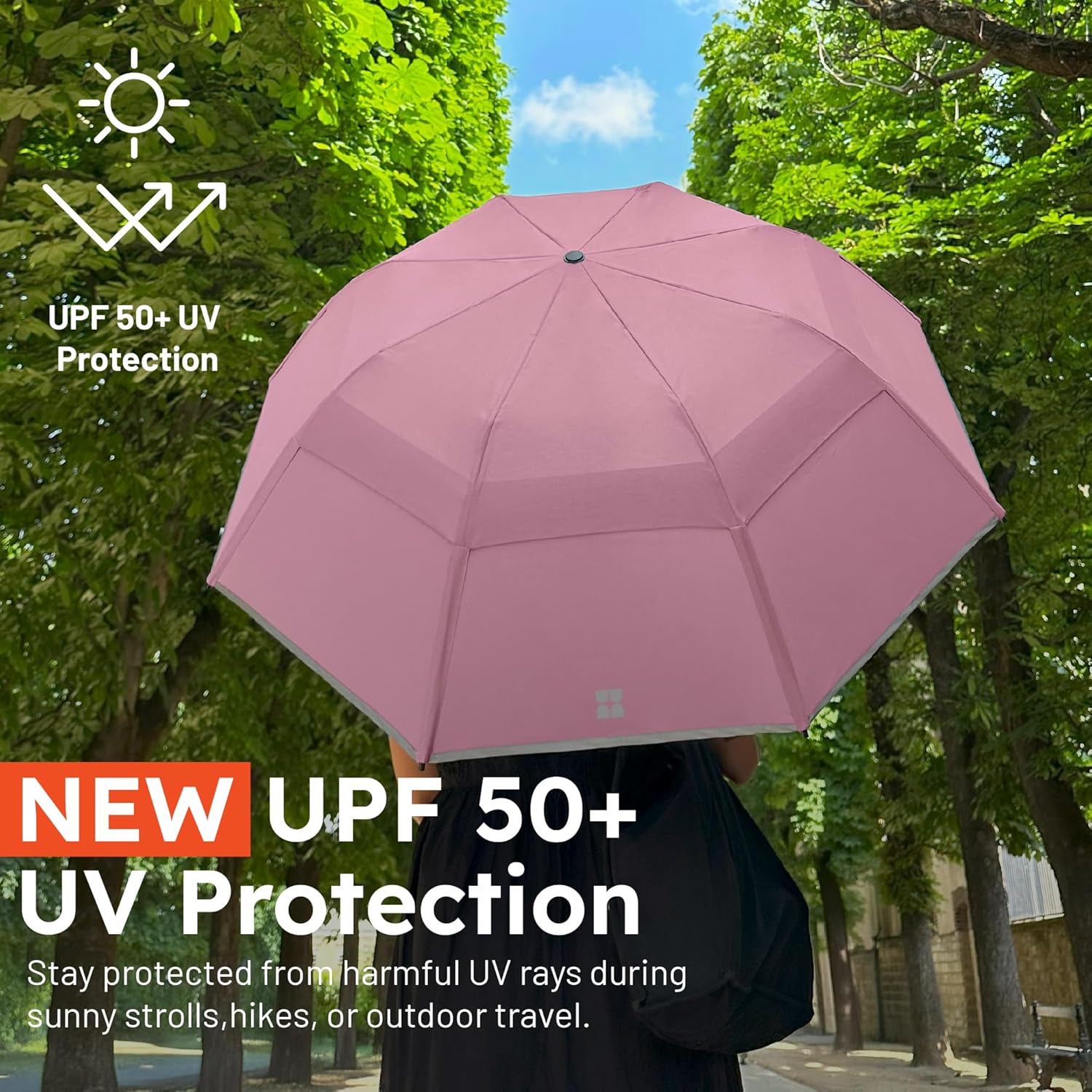 • EASY TO USE WITH ONE-TOUCH AUTOMATIC OPEN, MANUAL CLOSE FEATURE - Our umbrella for rain, collapsible umbrella features an auto open function for convenience. Whether you're rushing to a meeting or exploring a new city, this compact umbrella for travel ensures you stay dry in style with minimal effort.