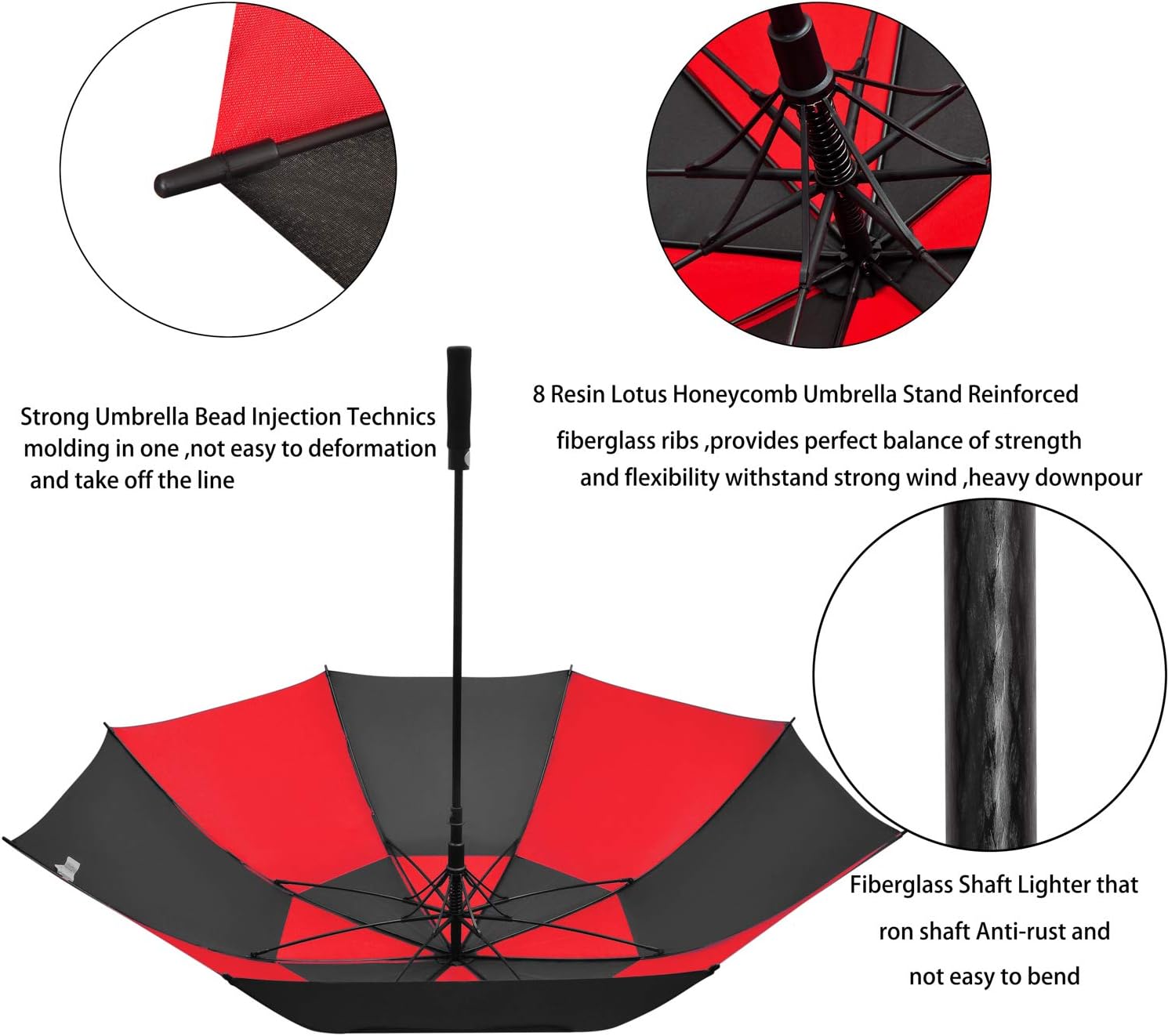 Golf Umbrella Large 58/62/68 Inch Automatic Open Golf Umbrella Extra Large Oversize Double Canopy Vented Umbrella Windproof Waterproof for Men and Women