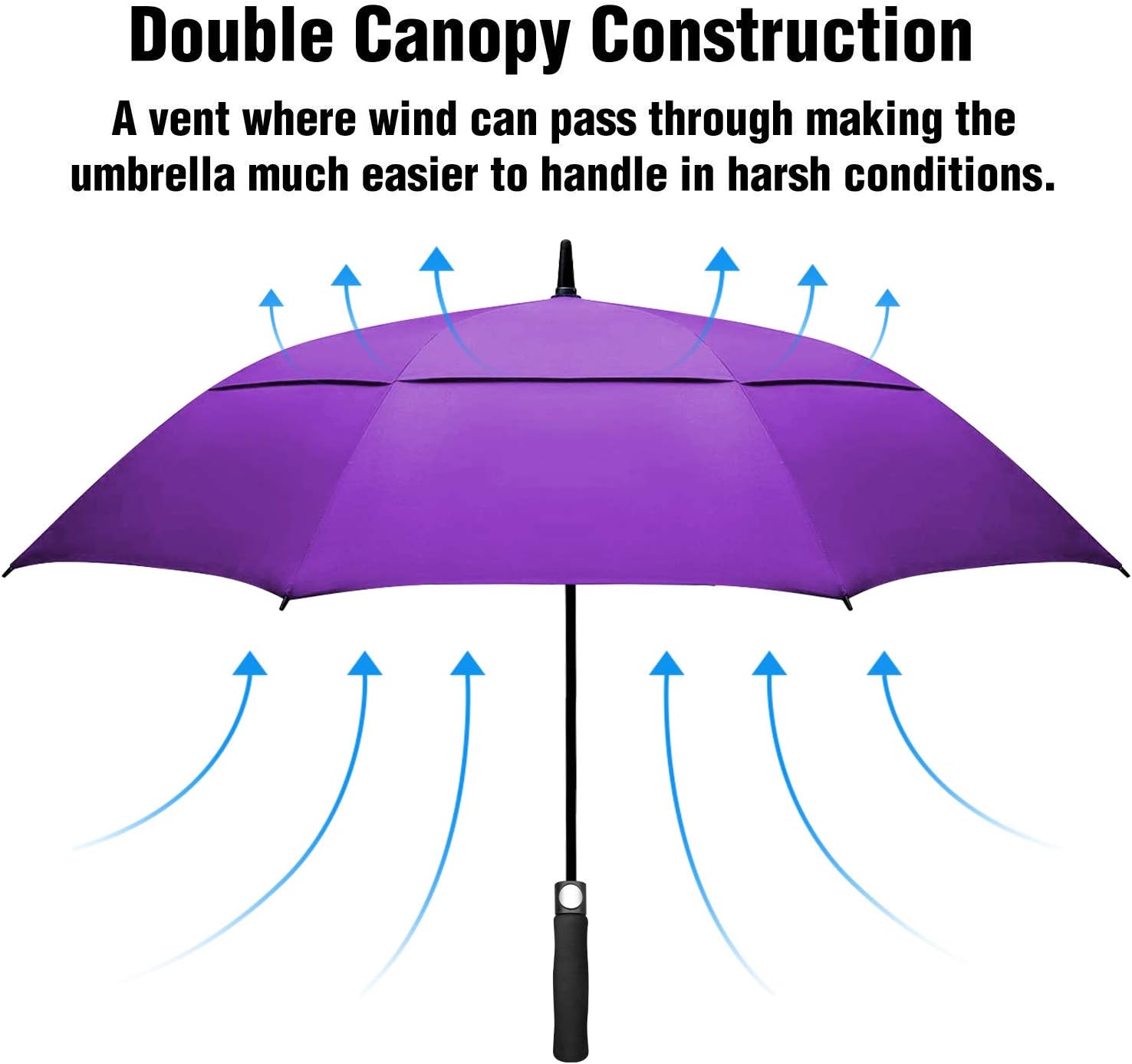 • DOUBLE CANOPY CONSTRUCTION: The double-canopy design and hardened steel frame will ensure that your umbrella is virtually windproof; The durable construction creates a vent during where wind can pass through, making the umbrella much easier to handle in harsh conditions