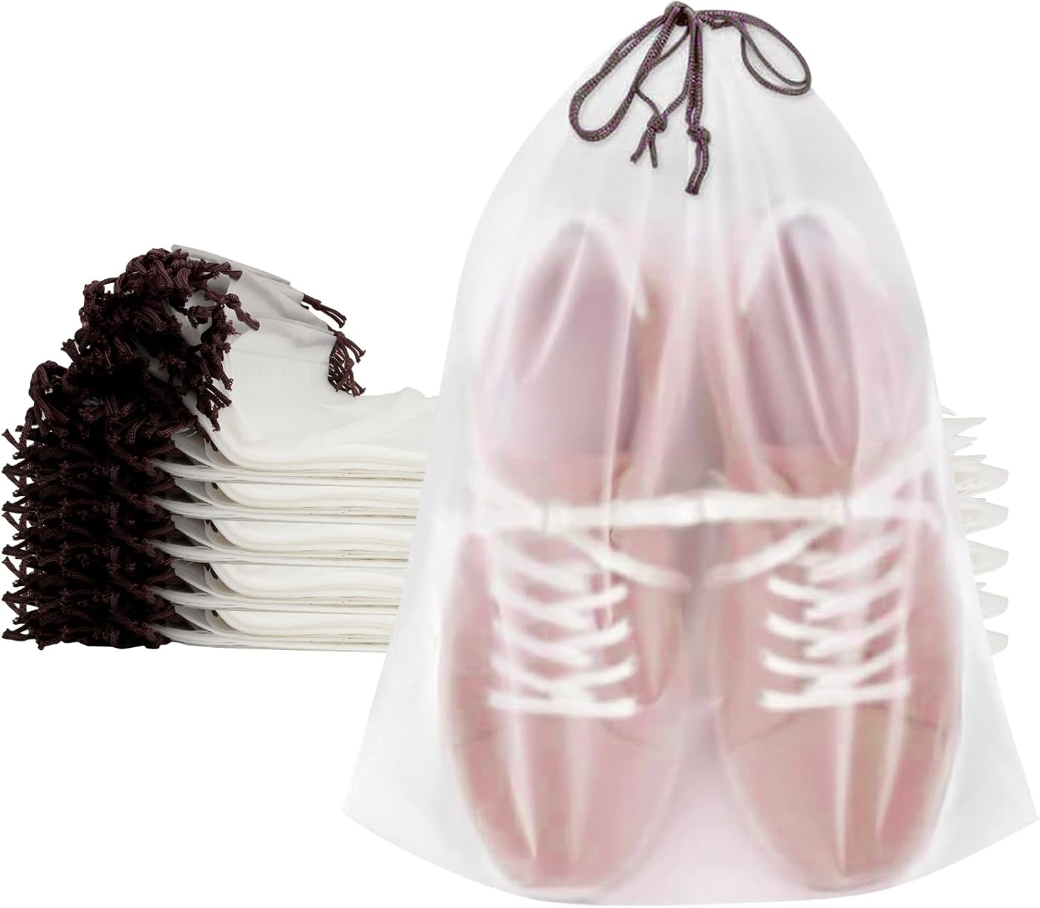 150 Pack Shoe Bags for Travel - 15.7" x 11.7" Large Clear Drawstring Bags - Waterproof Shoe Storage Dust Bags for Packing, Organization, Traveling