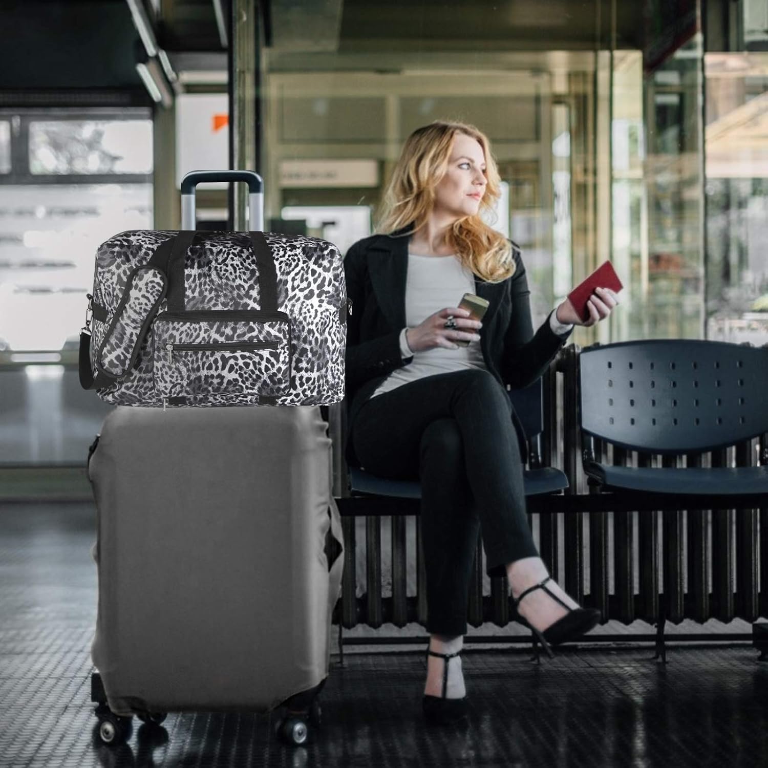 F.FETIVIN Travel Foldable Waterproof Duffel Bag - Lightweight Carry on Luggage Tote Duffel Bag(Leopard Print)