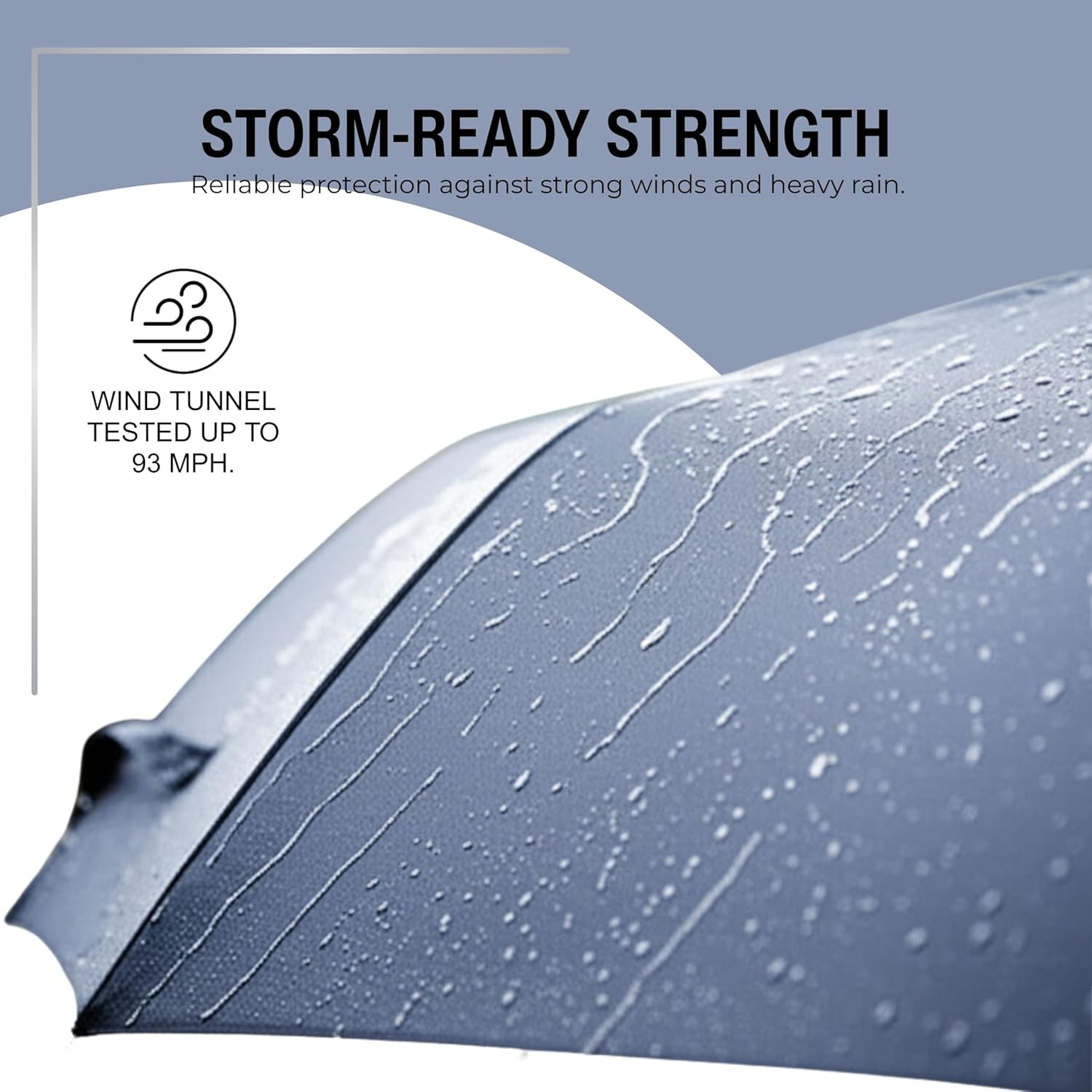 • Precision-Built for Storm-Level Winds – Reinforced three-part shaft and eight-rib frame combine aluminum, steel & fiberglass, then undergo wind-tunnel trials up to 93 mph (150 km/h). Result: rock-solid stability in squalls and driving rain while remaining light enough for everyday carry.