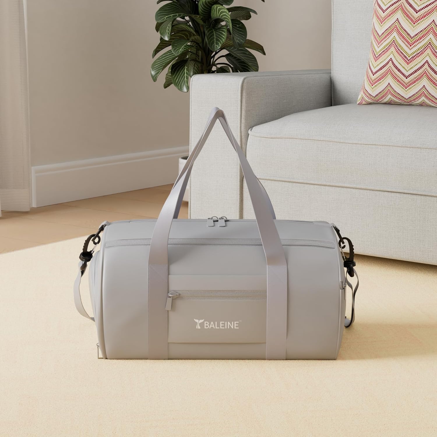 BALEINE Gym Bag for Women and Men, Small Duffel Bag for Sports, Gyms and Weekend Getaway, Waterproof Dufflebag with Shoe and Wet Clothes Compartments, Lightweight Carryon Gymbag (Silver)