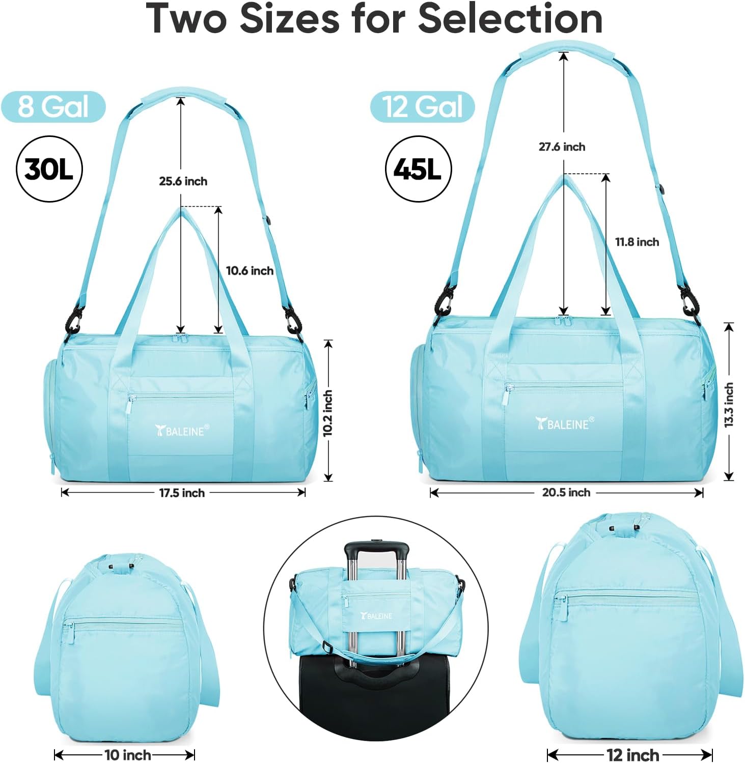 BALEINE Gym Bag for Women and Men, Duffel Bag for Sports, Gyms and Weekend Getaway, Waterproof Dufflebag with Shoe and Wet Clothes Compartments, Lightweight Carryon Gymbag (Azure)
