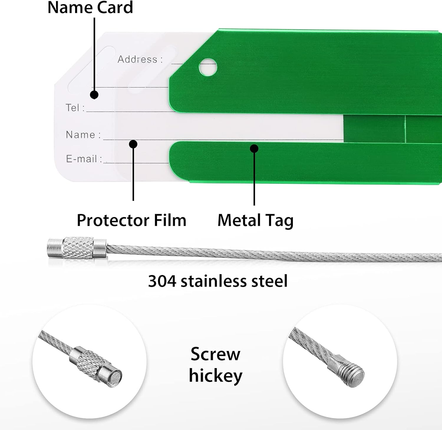 • Sturdy to use: the luggage tags are made of aluminum alloy, which is not easy to fade and durable, with one-time stamping and surface oxidation treatment, the color is bright and not easy to fade after long-term use; With stainless steel ring, not easy to fade and break, easy to use, convenient to fasten on the suitcase