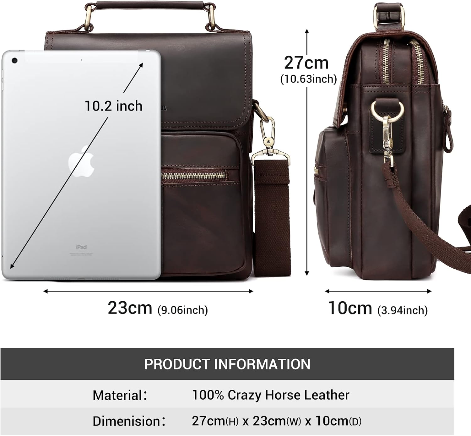 • Perfect Gift. This vintage leather messenger crossbody bag is perfect creative gift for birthdays, anniversaries, Father’s Day, Valentine's Day, Graduation and Christmas. If you have any issue or not satisfied with our man purse handbags, please feel free to contact us, we will solve the problem for you as soon as possible.
