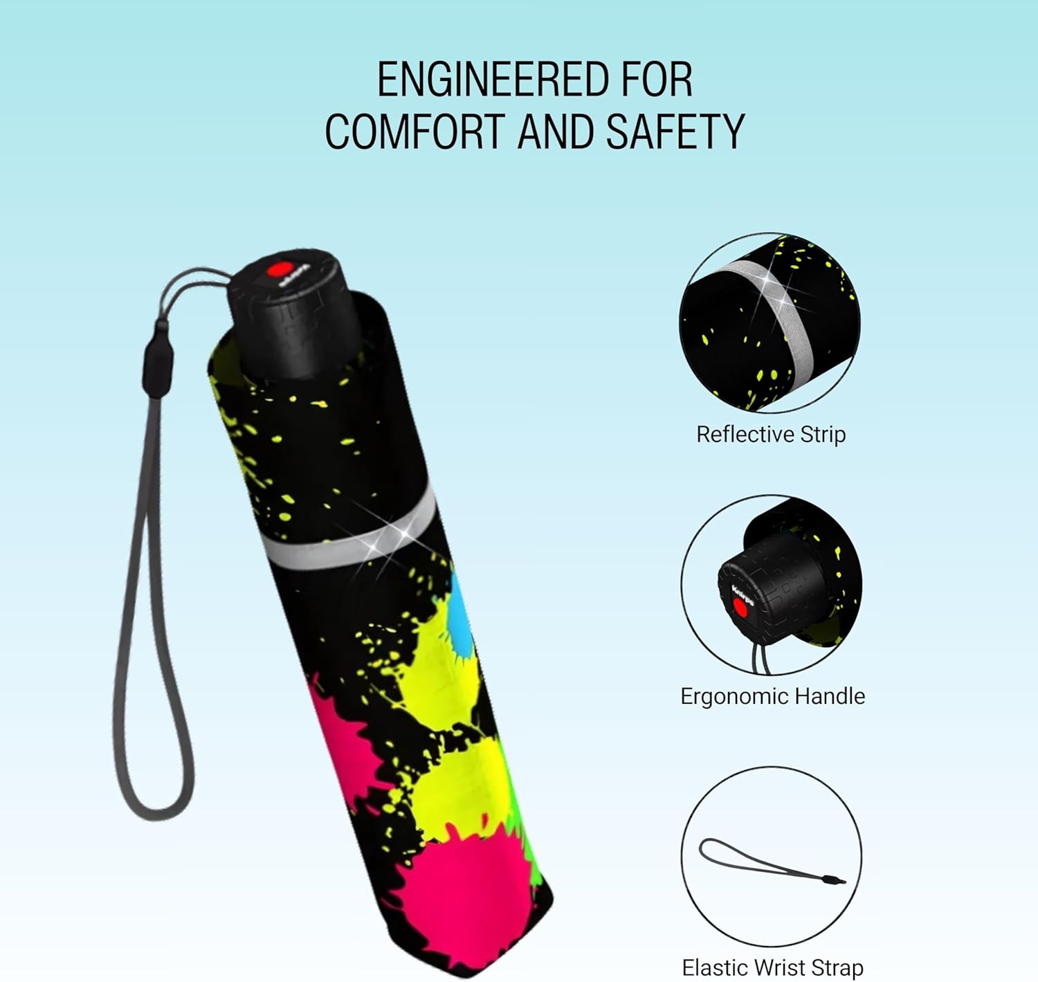 • Enhanced Safety with Reflective Band: Designed for visibility in low-light conditions, the umbrella features a full reflective stripe around the canopy edge, increasing safety during early morning walks or rainy afternoons.