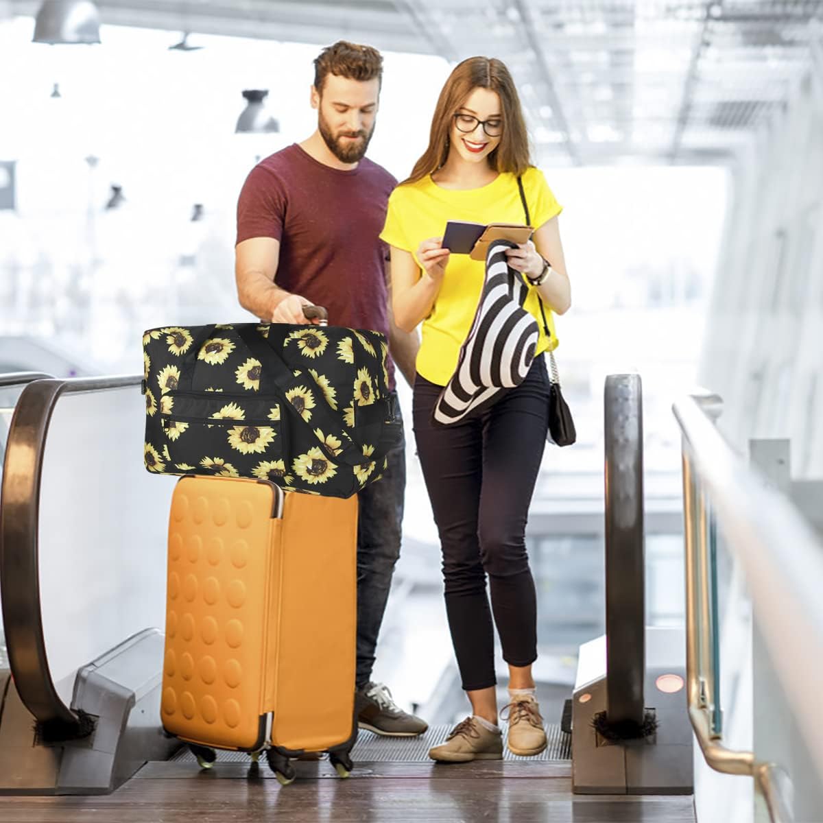 F.FETIVIN Weekender Bag Carry On Travel Duffle Medium Overnight Bag for Women(Sunflower)