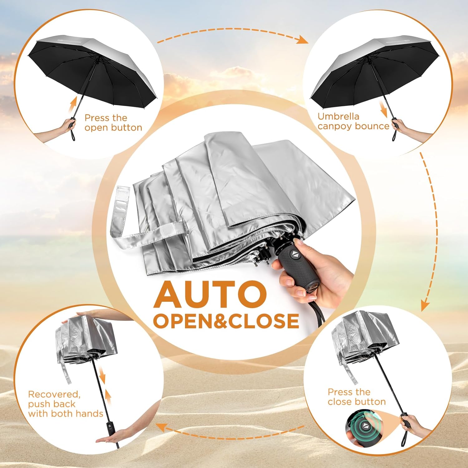 • 【UV Umbrella for Sun Protection】Upf 50+ sun umbrella uv protection (Black) is an effective uv protection umbrella that prevents sunburn and reduces temperature. The surface of the umbrella for sun is coated with a silver layer that blocks 98% of uva and uvb solar rays, and reflecting sunlight to keep you comfortable in the hot summer
