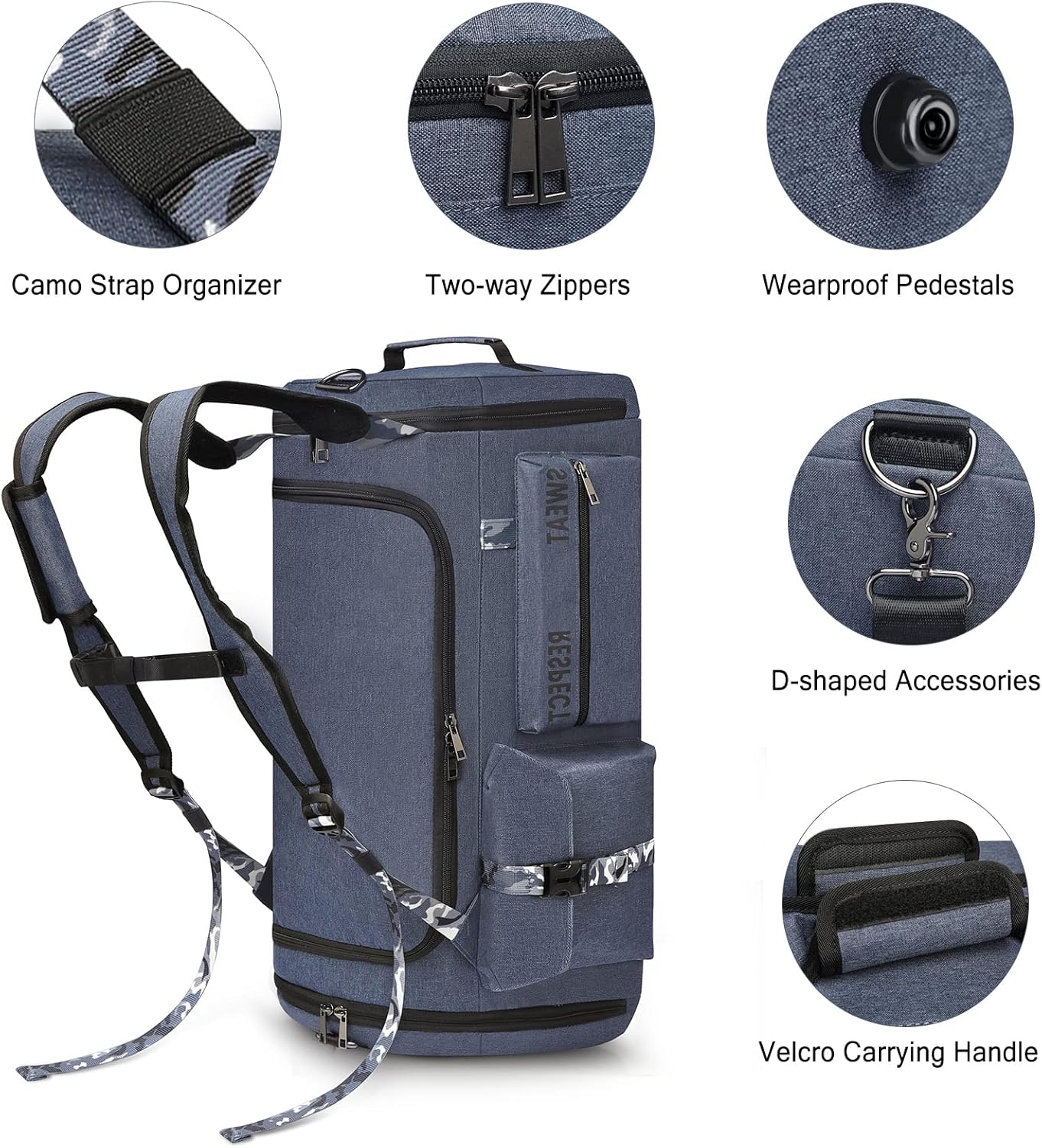 Gym Bags for Men Gym Duffle Bag Backpack 3-Way Sports Duffel Bags for Men with Shoe Compartment & Wet Pocket, Fitness Workout Training Bag, Blue
