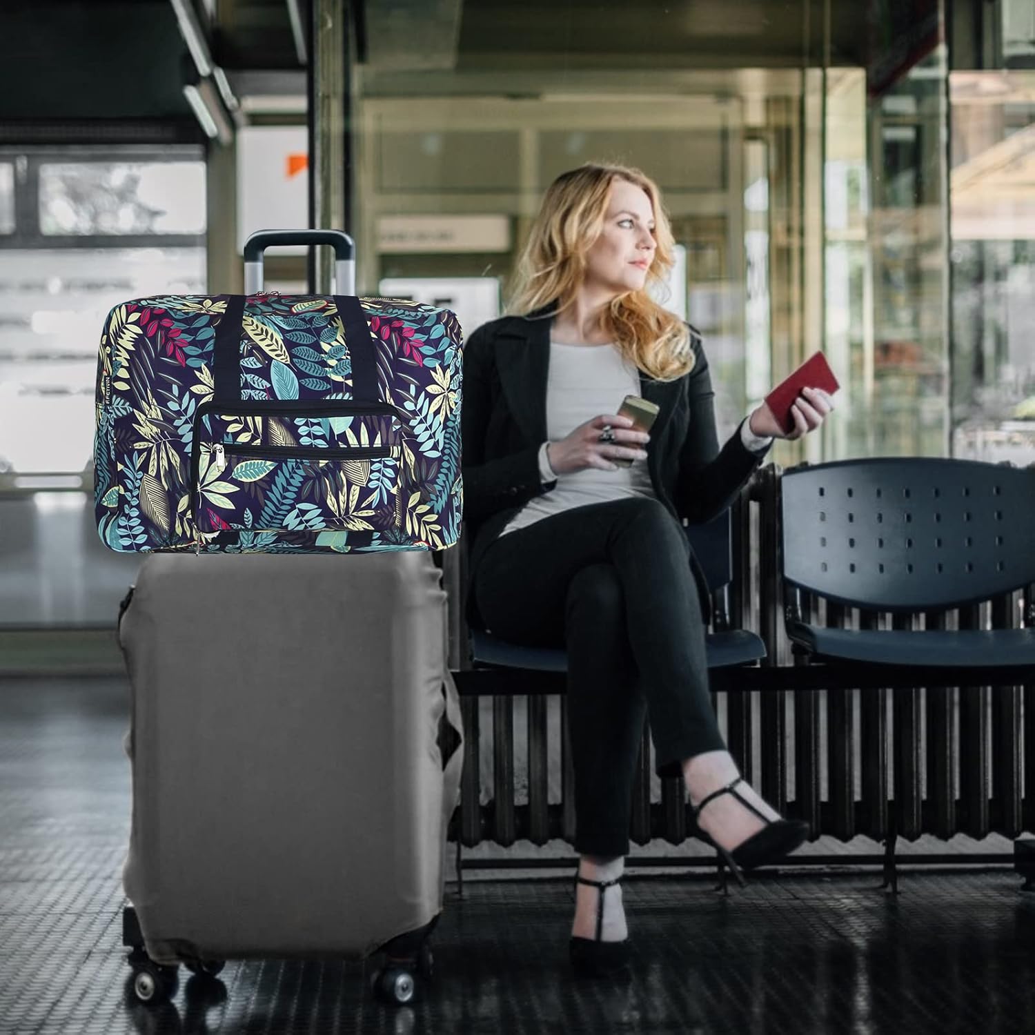 F.FETIVIN Weekender Bag Carry On Travel Duffle Medium Overnight Bag for Women (Blue Leaf)