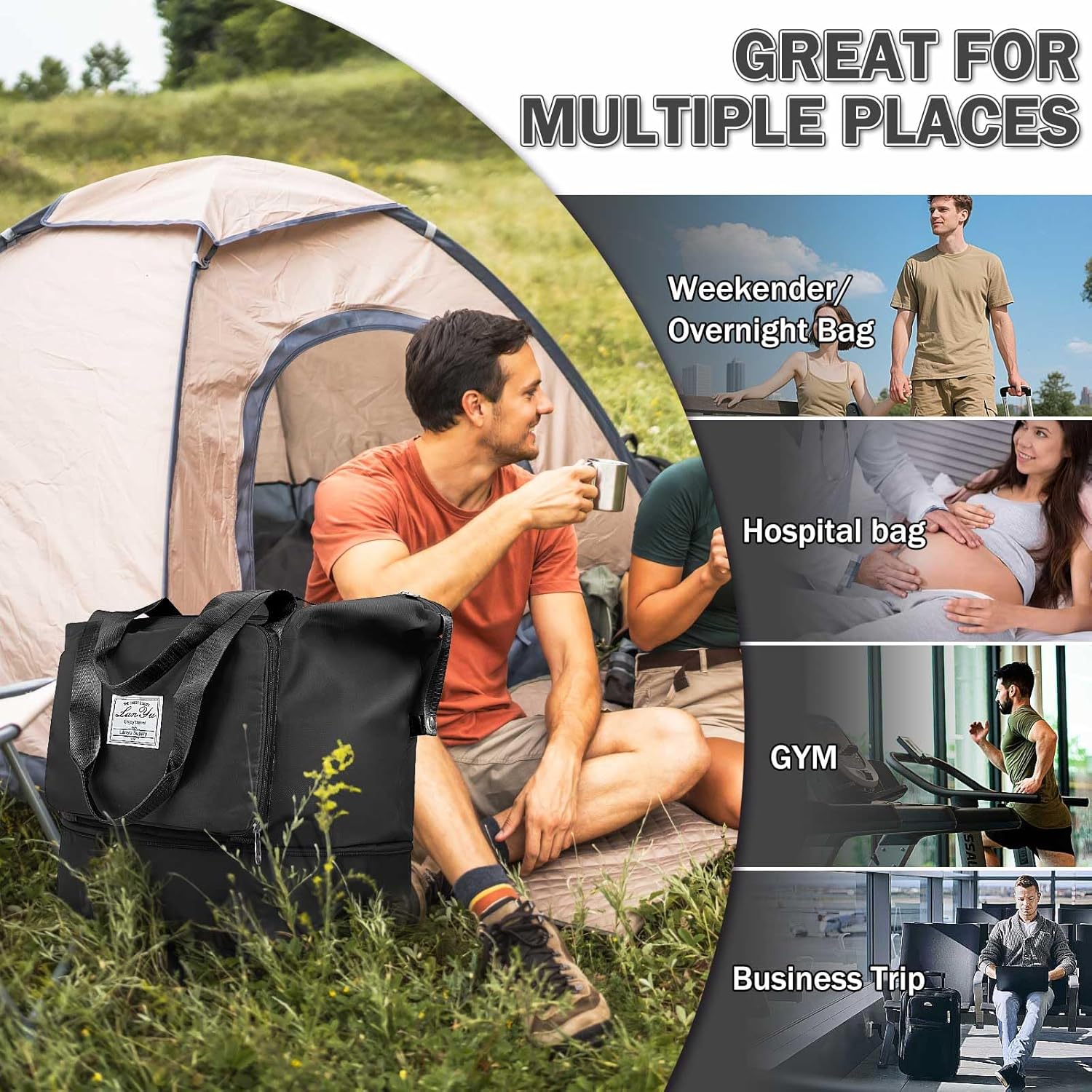 • Wide Application Folding Travel Tote Bag: Gym, Sports, Travel, Weekend, Luggage, Carry-on Bag, Shopping Bag, Beach Bag, Hiking and Camping. Suitable for women, men, teens and big kids, great idea as personal item for airline travel and emergency spare bag in the suitcase