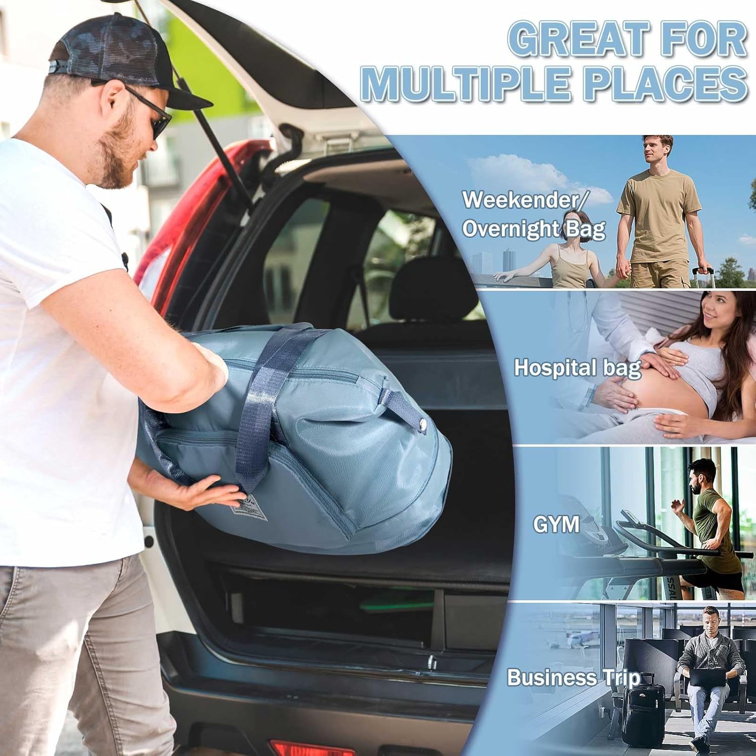 • Wide Application Folding Travel Tote Bag: Gym, Sports, Travel, Weekend, Luggage, Carry-on Bag, Shopping Bag, Beach Bag, Hiking and Camping. Suitable for women, men, teens and big kids, great idea as personal item for airline travel and emergency spare bag in the suitcase.