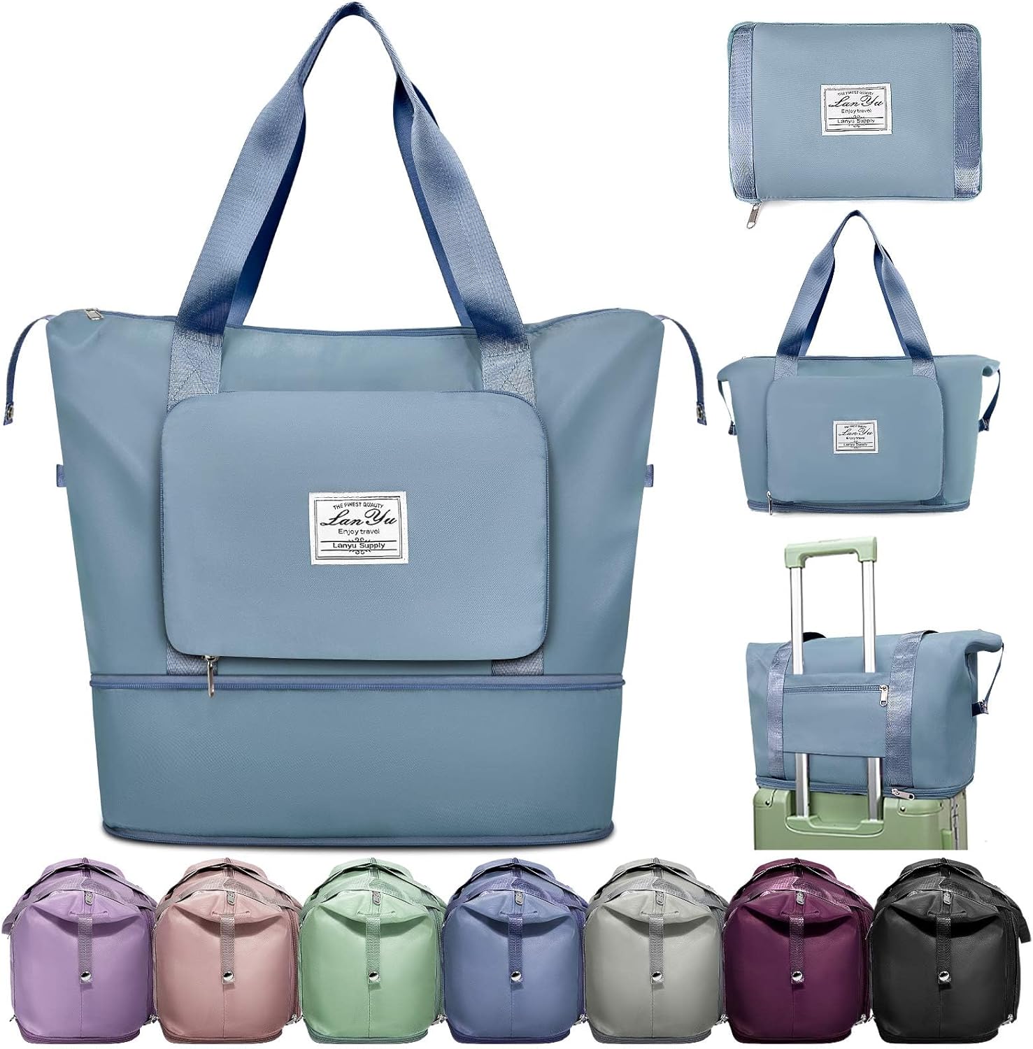 Ranslen Large Capacity Folding Travel Bag,Expansion Travel Duffel Bag with Dry and Wet Separation Portable Travel Duffel Bag