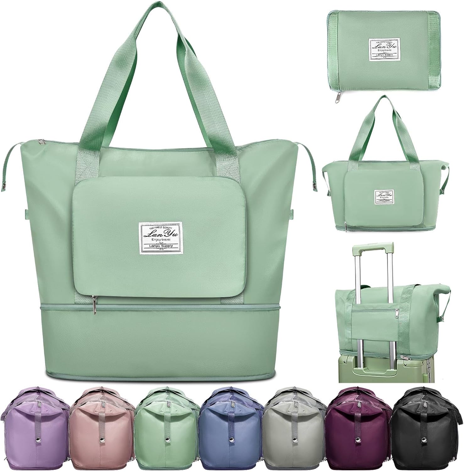 Ranslen Large Capacity Folding Travel Bag,Expansion Travel Duffel Bag with Dry and Wet Separation Portable Travel Duffel Bag