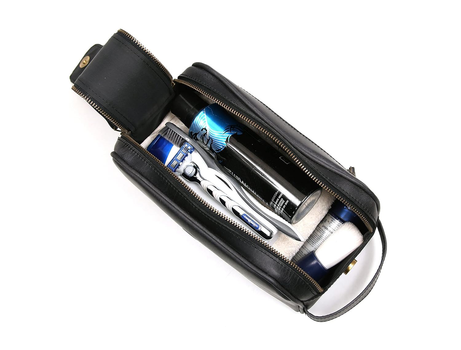 • **PERFECT GIFT - A Wise And Thoughtful Gift For Him or Her. Classy And Elegant On The Go Leather Travel Pouch. DIMENSIONS - 10” (Length) x 5.5” (Height) x 5.5” (Width) | King-Size : Extra-Large Kit To Hold All Your Grooming, Shaving And Toiletry Necessities; Yet Compact Enough To Easily Pack In Your Travel Bag.