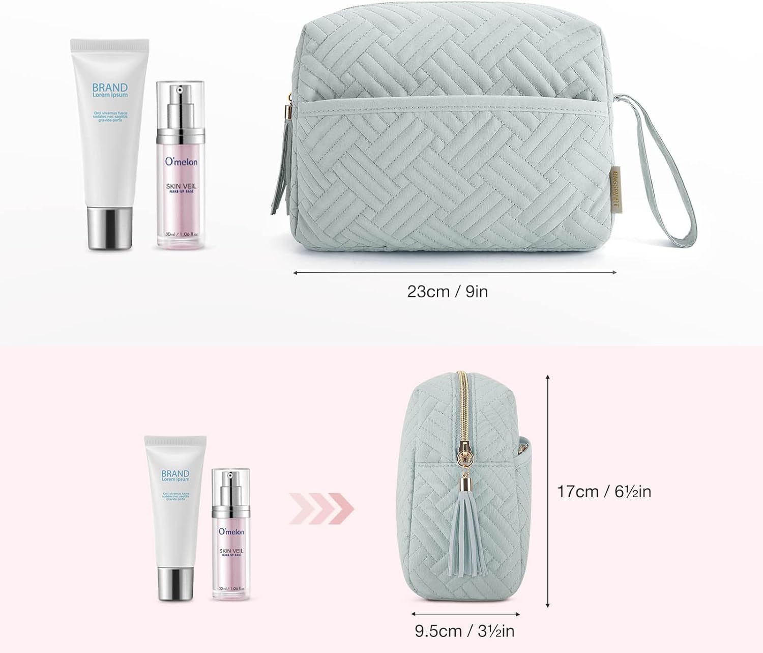 • This cosmetic bag really brings out the best of our quilting process. Made of water repellent and soft peach-skin fabric with supple touch.The stitching and zipper are great quality and well made.