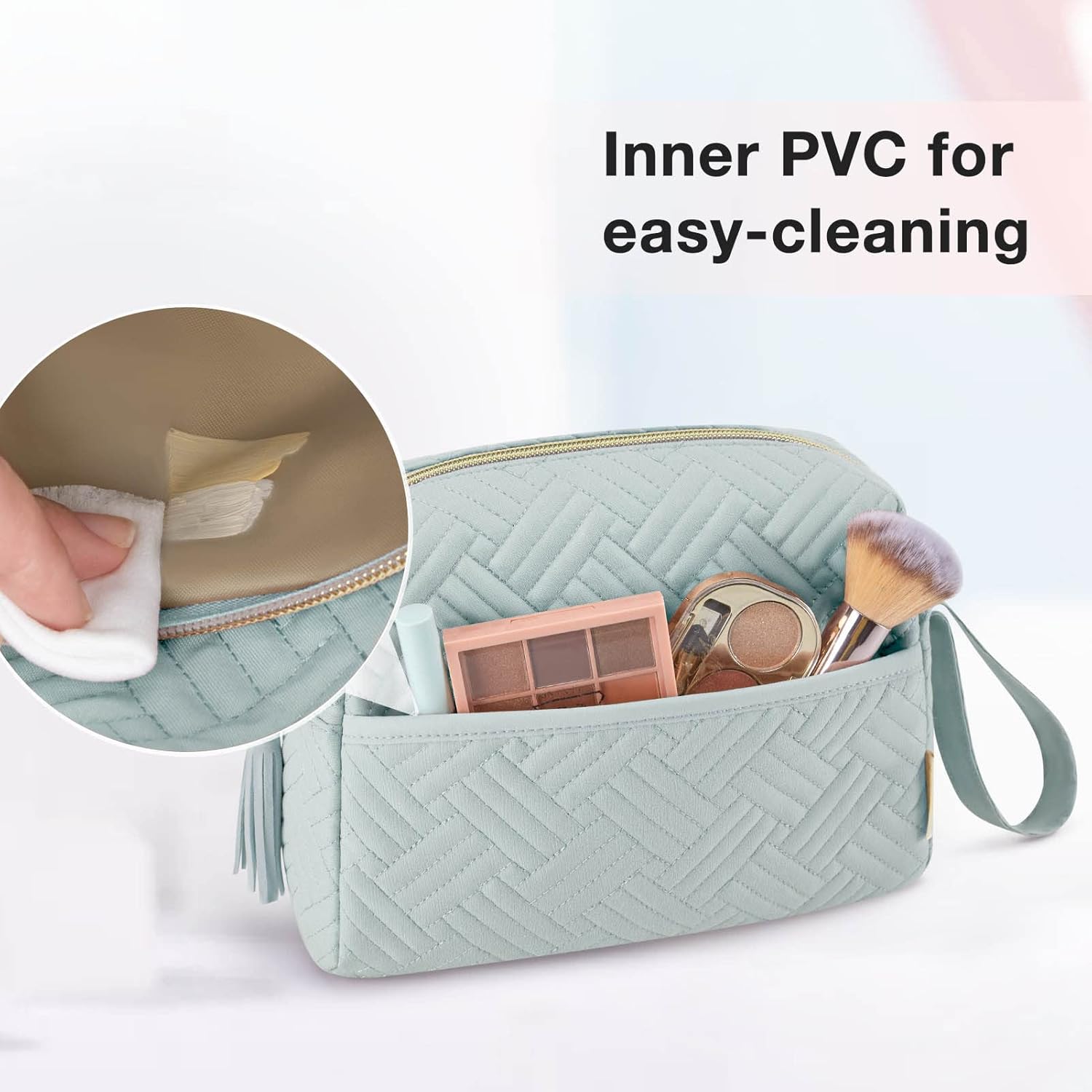 BAGSMART Makeup Bag, Cosmetic Bag for Purse,Travel Make Up Pouch,Water-resistant Toiletry Bag Elegant Roomy, Makeup Accessories Organizer, Light Blue