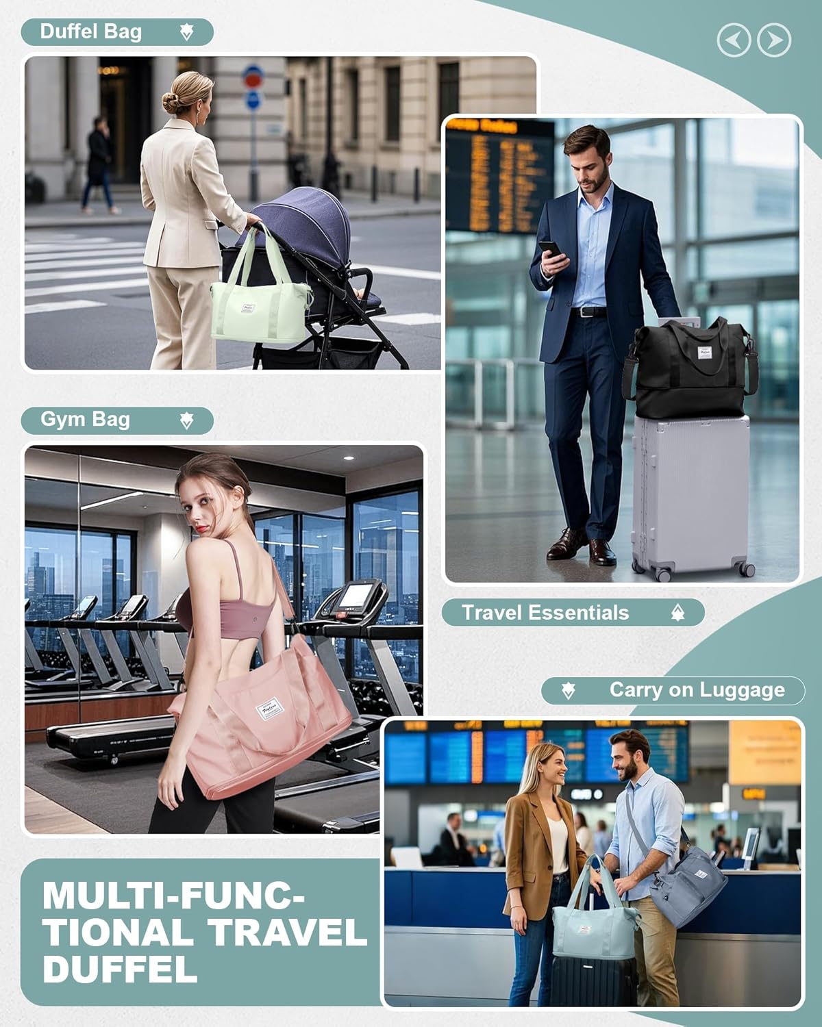 Travel Duffel Bag, Sports Tote Gym Bag, Shoulder Weekender Overnight Bag for Women