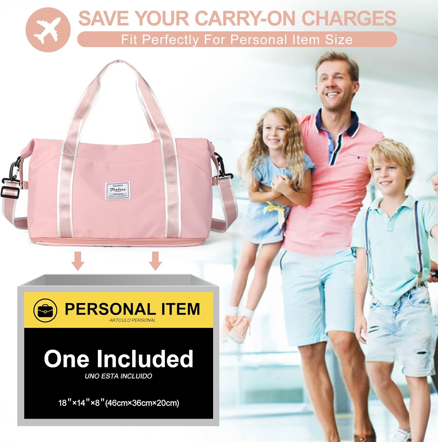 • 【High Capacity Travel Bag】Travel Bag has three multiple internal and four external organizational pockets,which ensure you placed more scientifically and orderly.The overnight bag for women has Large Capacity.Ordinary size :41*26*22CM,Expansion Dimension:41*37*22CM.You can carry it onto an airplane. Large storage space for a clothes for short trip.It has a capacity of 35L and can hold 6 to 8 pieces of summer clothes,Cosmetics,toiletries,wallets,keys,earphones,mobile power,mobile phones,files.