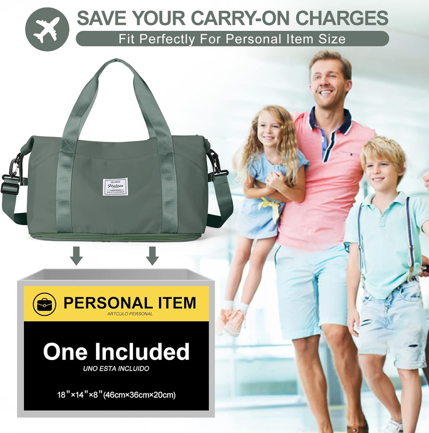 • 【High Capacity Travel Bag】Travel Bag has three multiple internal and four external organizational pockets,which ensure you placed more scientifically and orderly.The overnight bag for women has Large Capacity.Ordinary size :41*26*22CM,Expansion Dimension:41*37*22CM.You can carry it onto an airplane. Large storage space for a clothes for short trip.It has a capacity of 35L and can hold 6 to 8 pieces of summer clothes,Cosmetics,toiletries,wallets,keys,earphones,mobile power,mobile phones,files.