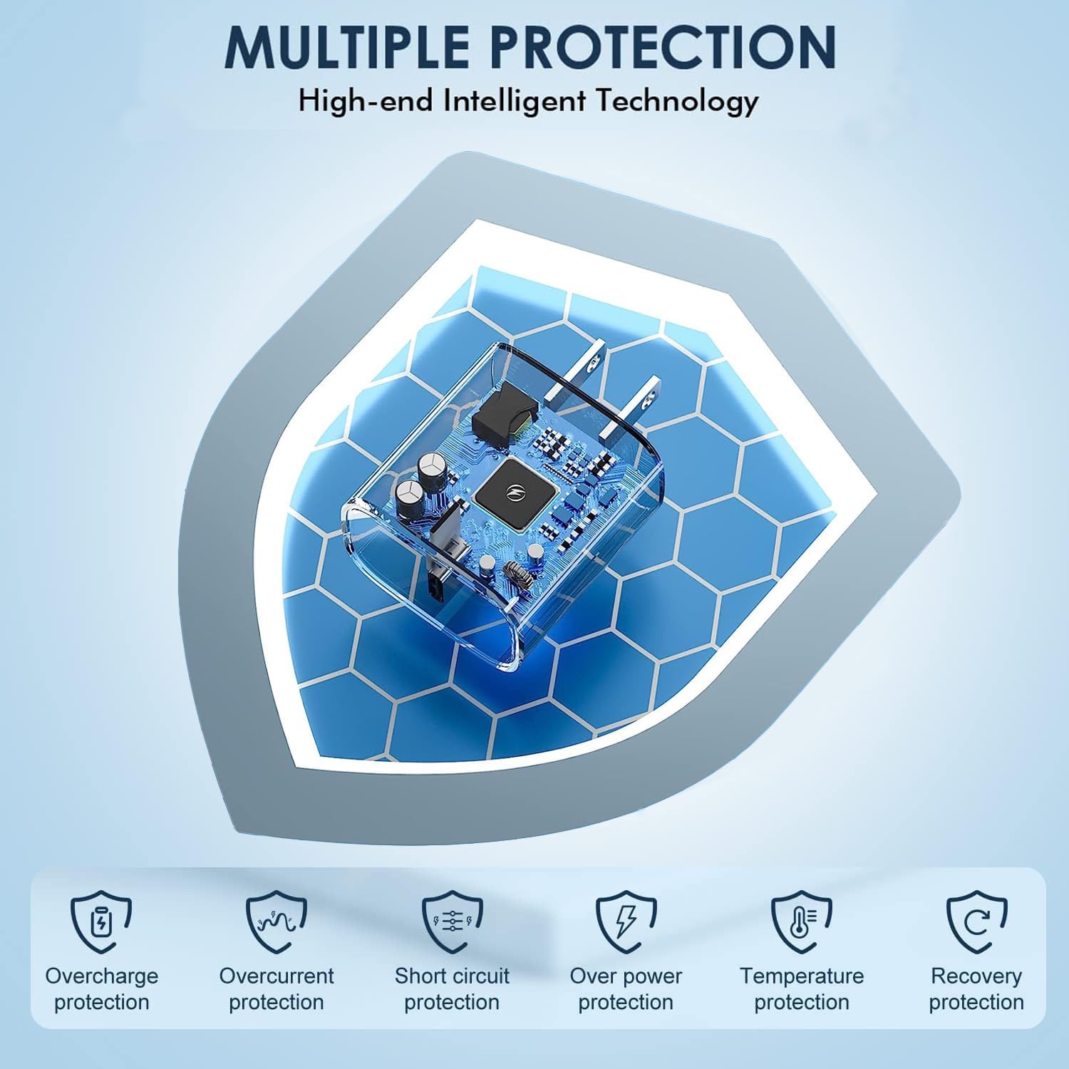 • 【Safety Certificate】20W USB C Fast Charger Block has fire proof shell and over-charging, over-currents, and overheating. Charging stops when the phone is full. Keep charger block and USB Type C cable quality to make them stable, uniform, safe & effective, let you feel at ease to use them.