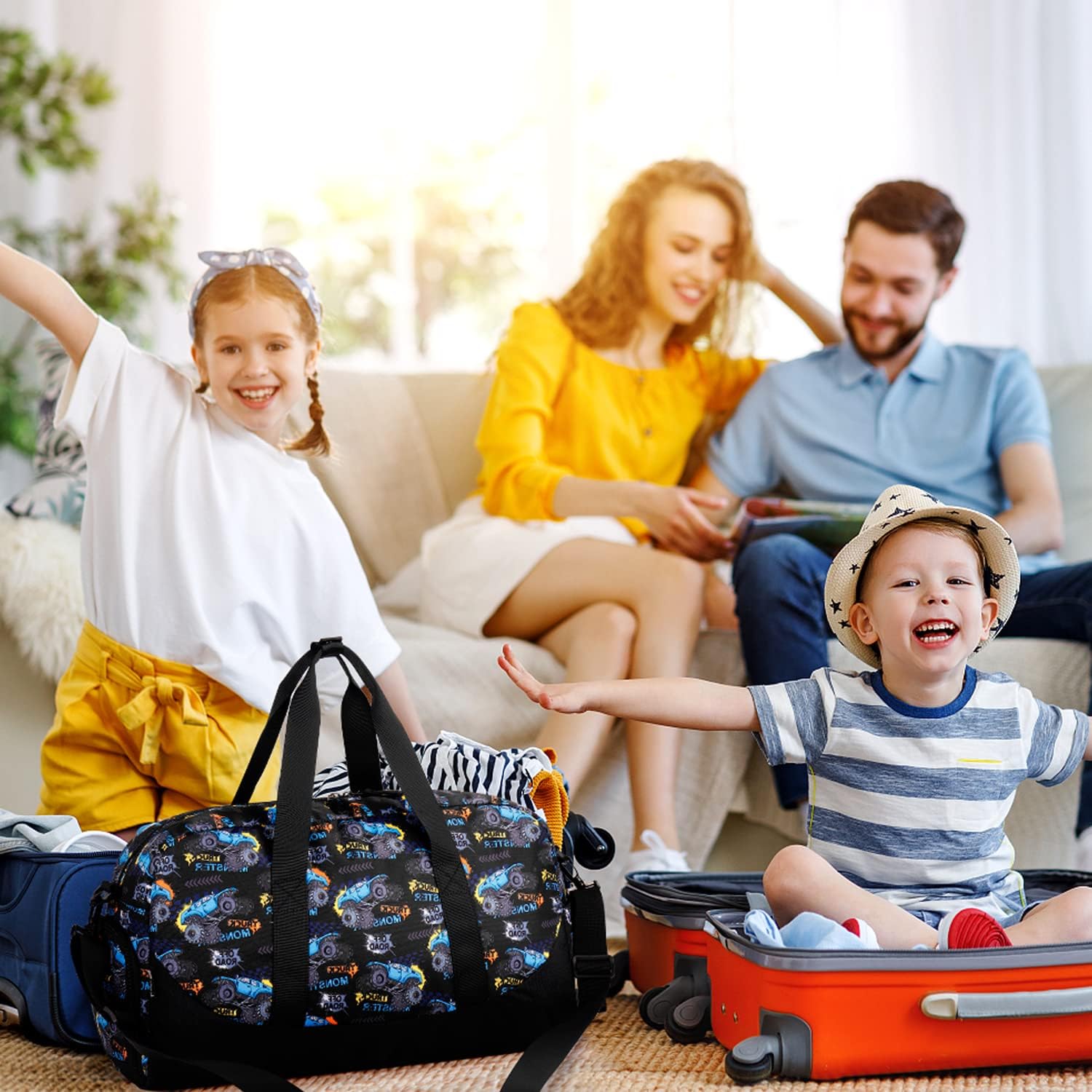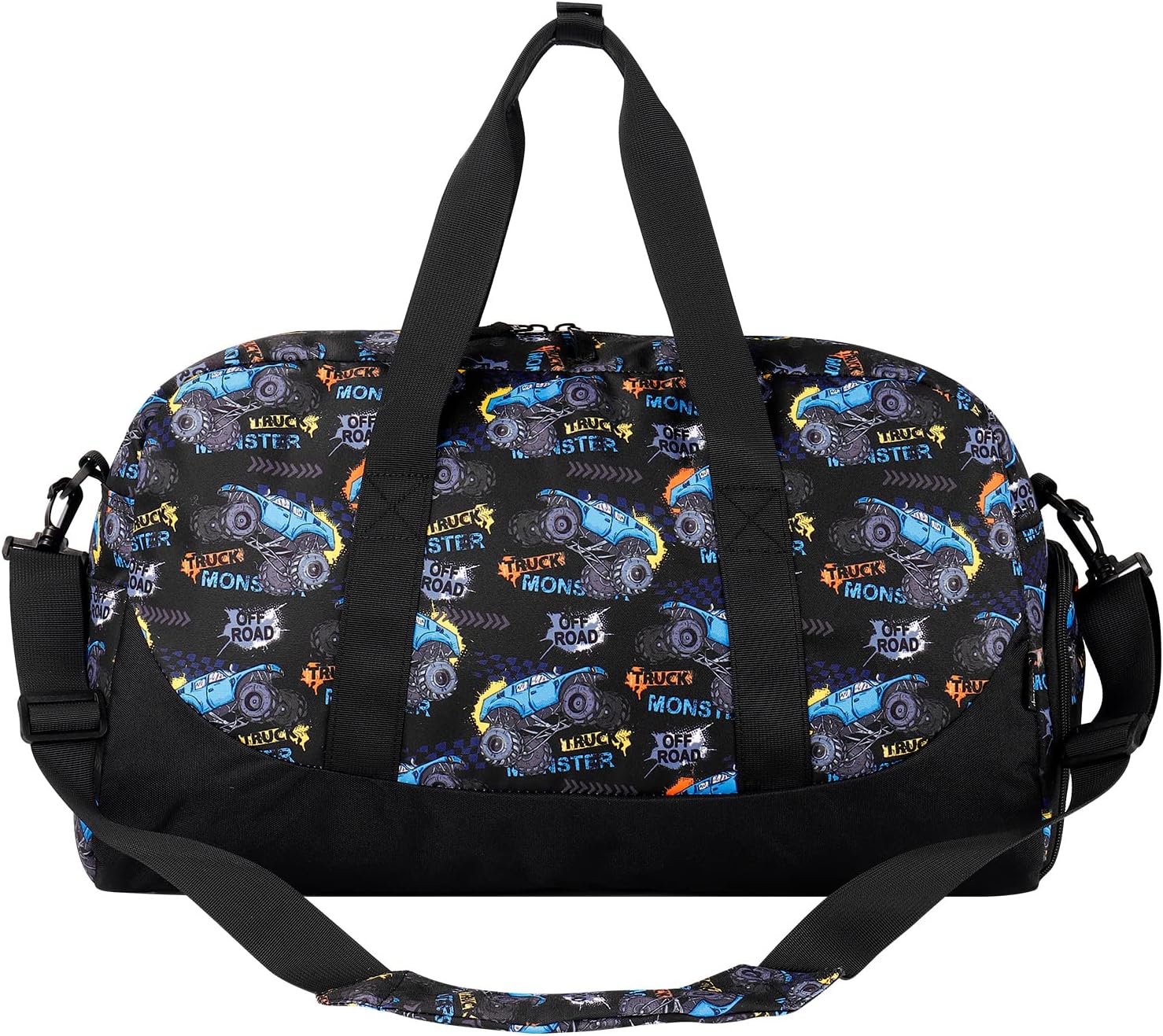 Choco Mocha Kids Monster Truck Duffle Bag - Boys Overnight Bag for Toddler Travel & Sleepover - Black