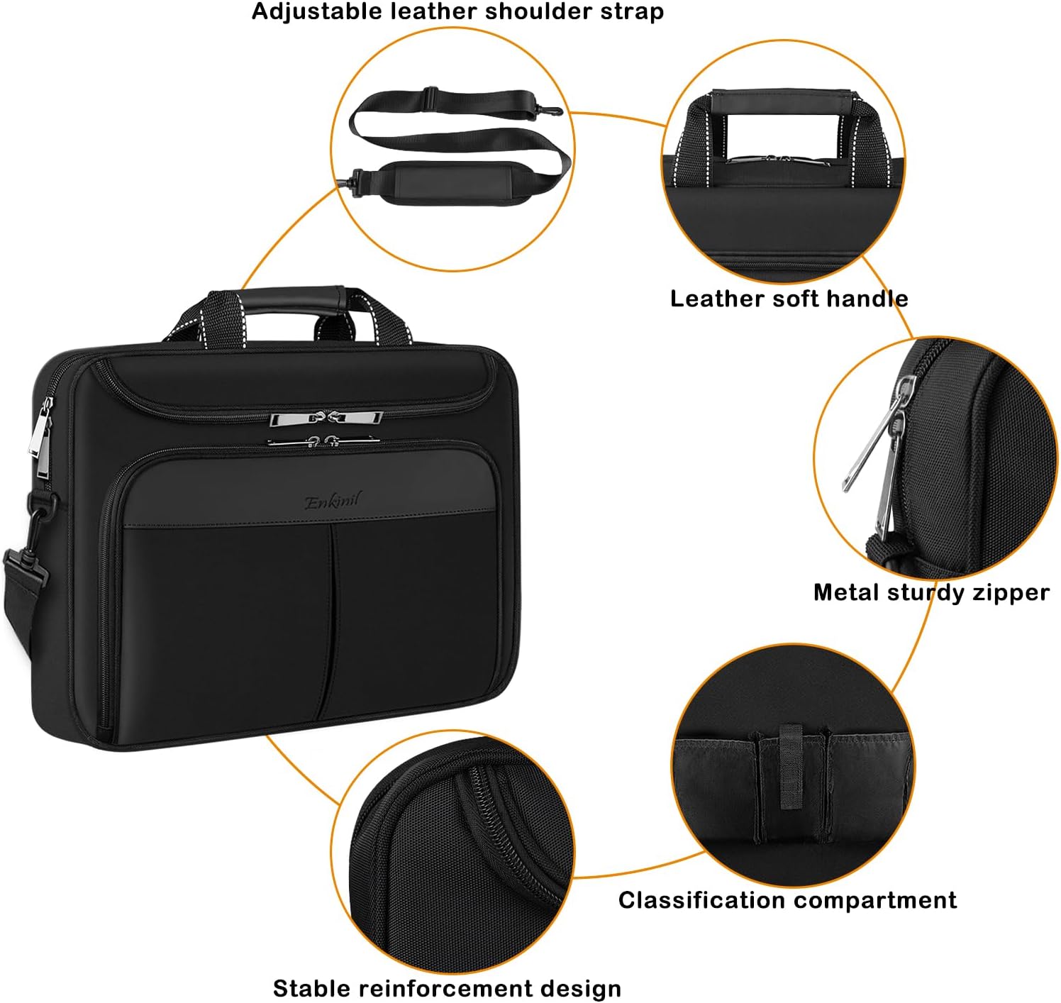 • 【Practical & Universal】 Enkinil laptop shoulder bag external dimensions:40.5 x 30.5 x 6 cm/15.9 x 12 x2.36 inch.It fits most 15.6 inch laptops.It has a large capacity and can be loaded into your laptop and other supplies including clothes, umbrellas, documents, etc. The back of the bag has a luggage strap, which allows the bag to be placed on the luggage bar for easy travel.