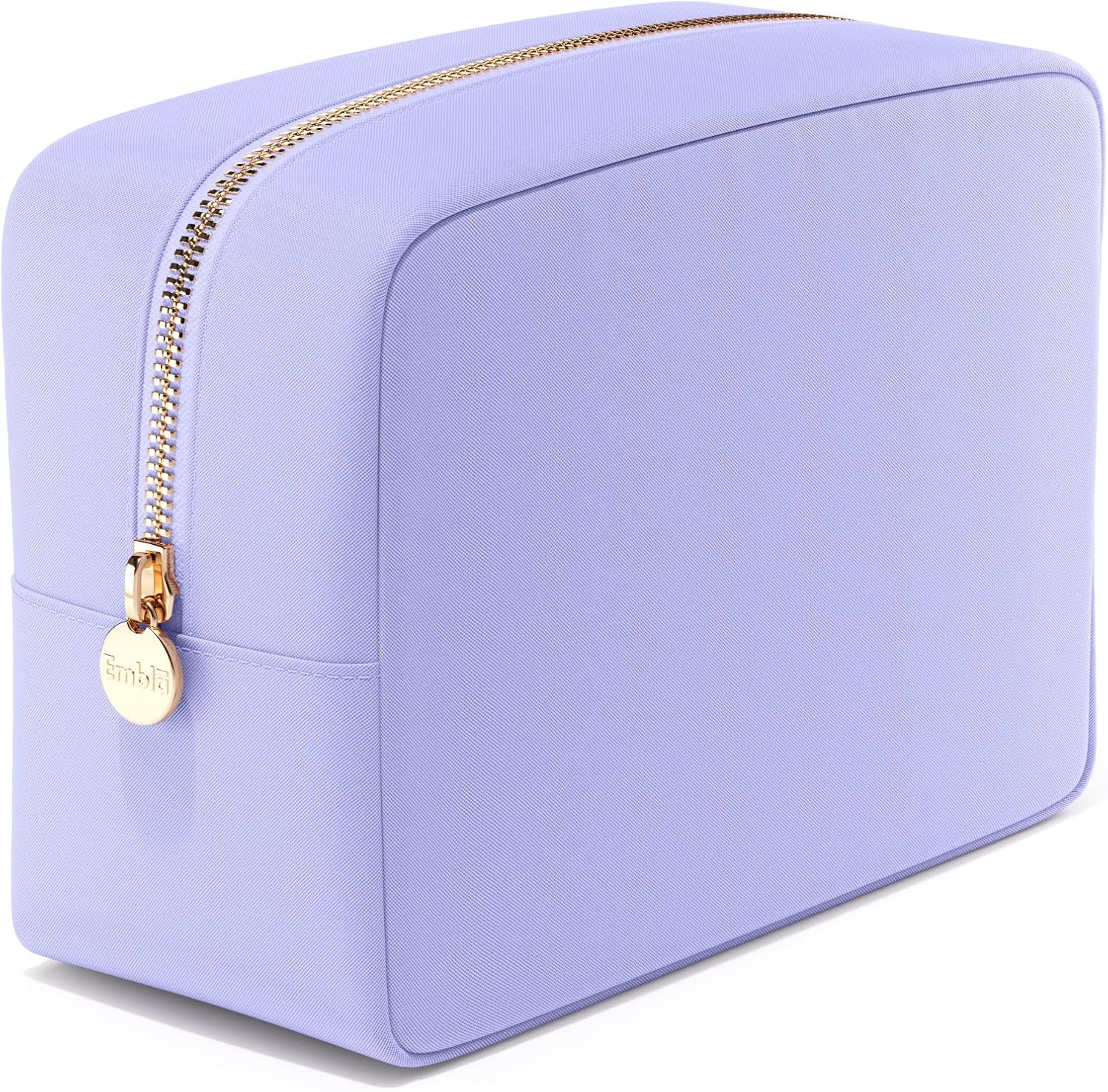 Embla Makeup Bag Travel Cosmetics Pouch and Toiletry Bag, Nylon Zipper Pouch Purse, Cute Make Up Organizer Storage Tote for Women Girls, Waterproof Travel Skincare Case, Large Makeup Bags, Lilac