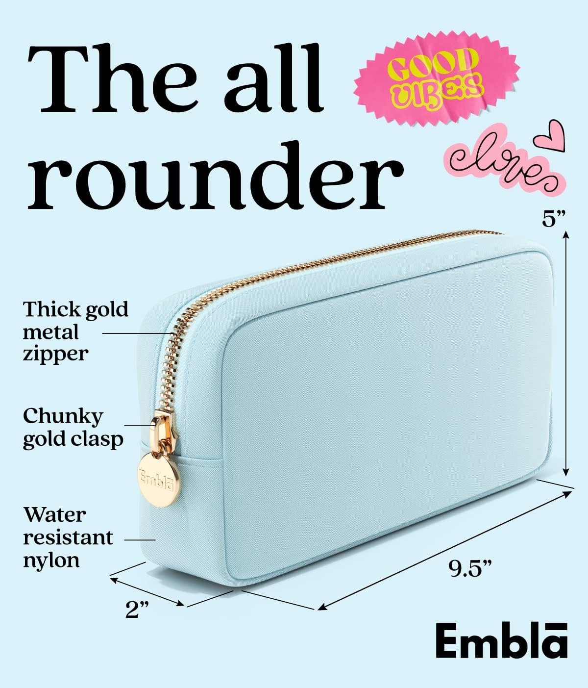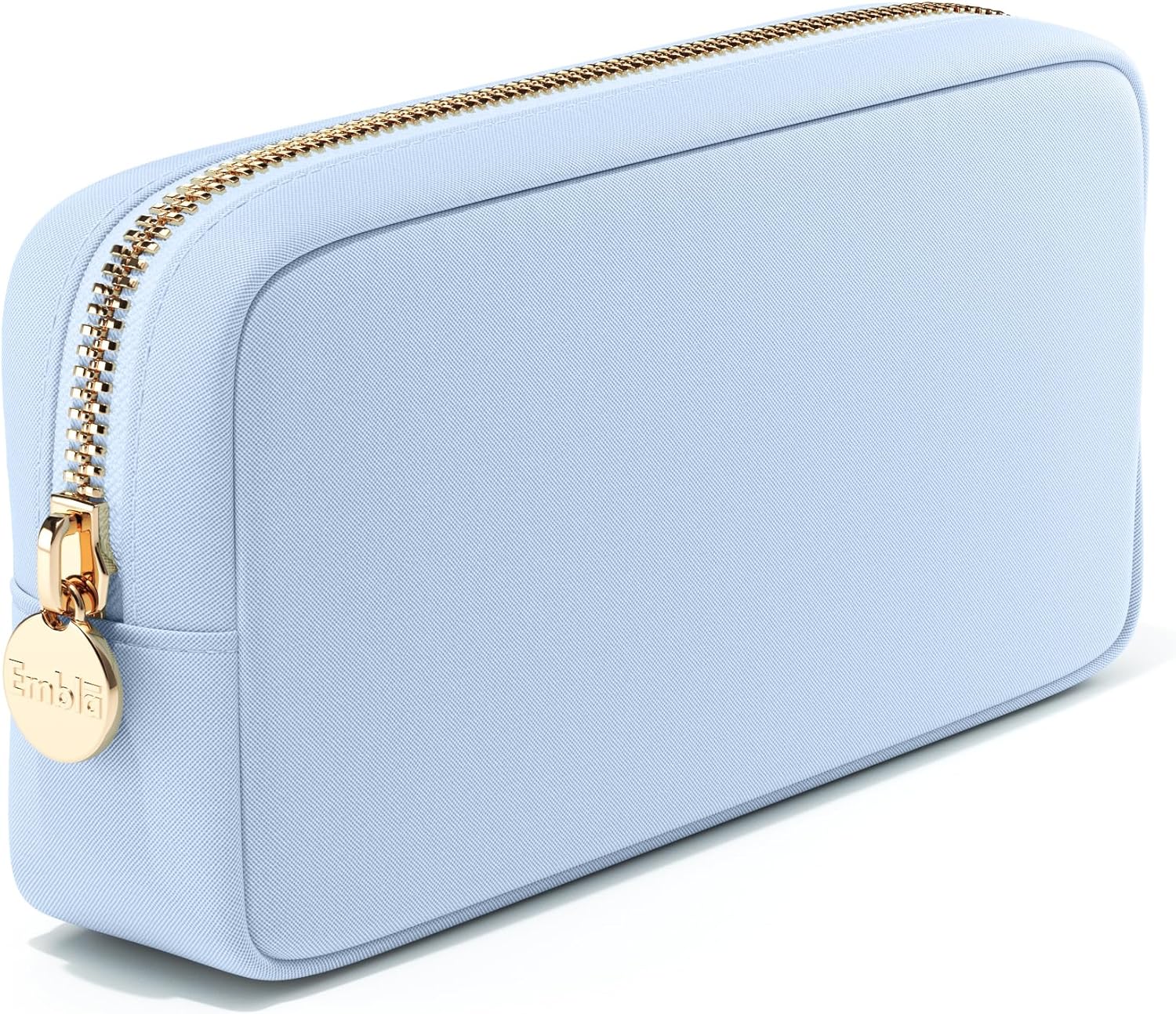 Embla Makeup Bag Travel Cosmetics Pouch and Toiletry Bag, Nylon Zipper Pouch Purse, Cute Make Up Organizer Storage Tote for Women Girls, Waterproof Travel Skincare Case, Small Makeup Bags, Sky Blue