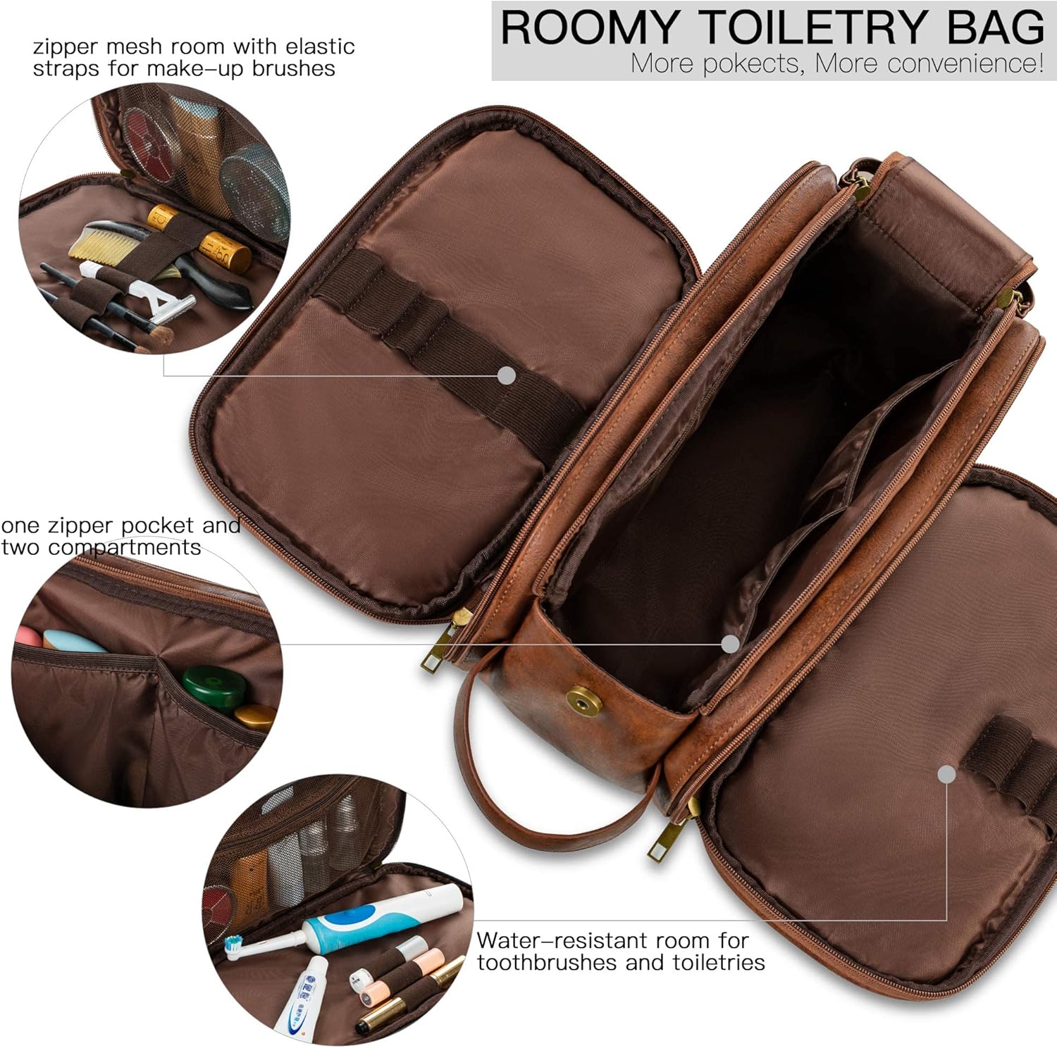Elviros Toiletry Bag for Men, Large Travel Shaving Dopp Kit Water-resistant Bathroom Toiletries Organizer PU Leather Cosmetic Bags Fathers Day Gift (Medium, Dark Brown)
