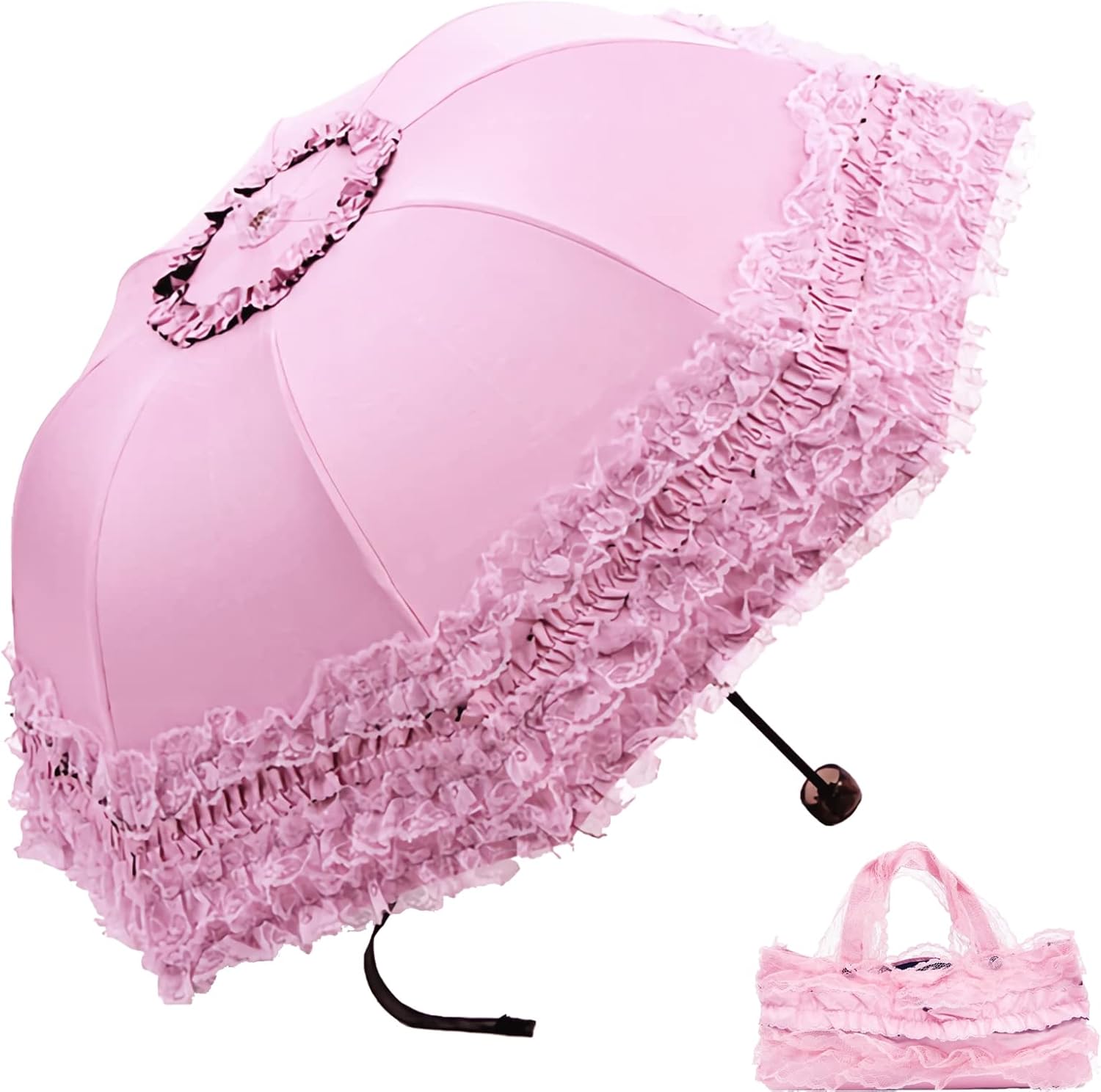 • [Lady Like]: The parasol comes with a cute carrying bag, lace detail is dainty and elegant.