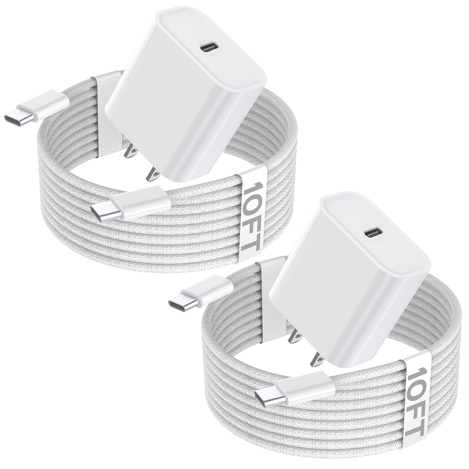 10FT iPhone 17 Pro/16e Charger Fast Charging,2Pack 20W USB C Apple 16 15 Pro Charger Block & 10Foot Long USBC Woven Cable Cord for iPhone 17/17 Air/17 Pro Max/16/16 Pro Max/16 Plus/15/15 Pro Max/iPad