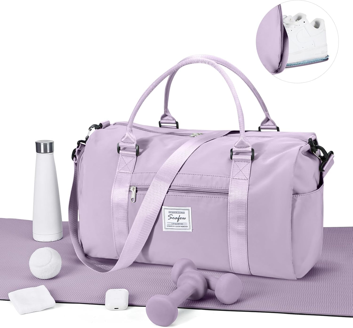 Gym Bag for Women Men with Shoes Compartment,Sports Duffle Bag Personal item travel Duffel Bags Tote Bag Small Carry on Weekender Overnight Bag Workout Dance Bag Hospital Holdalls Light Purple