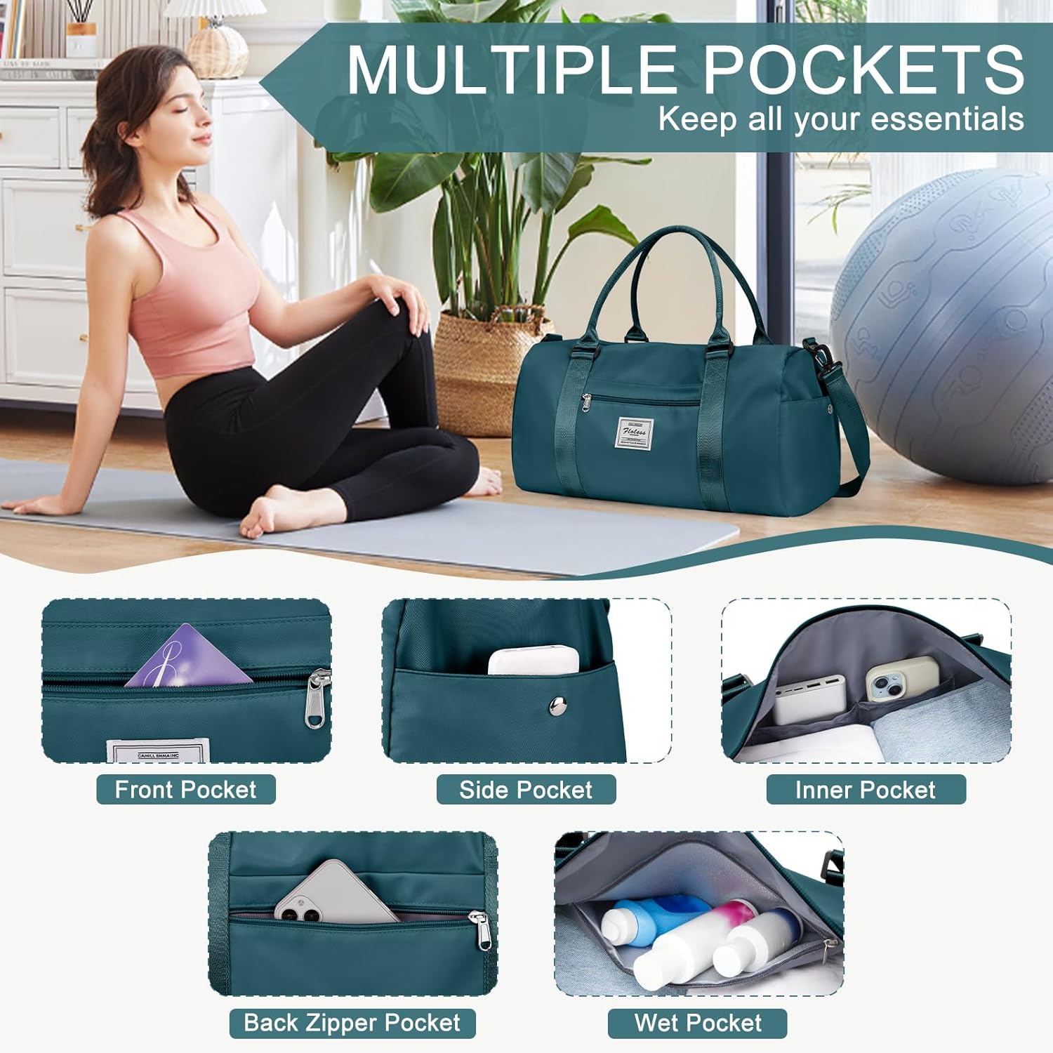 Gym Bag for Women Men with Shoes Compartment,Sports Duffle Bag Personal item travel Duffel Bags Tote Bag Small Carry on Weekender Overnight Bag Workout Dance Bag Hospital Holdalls Peacock Blue
