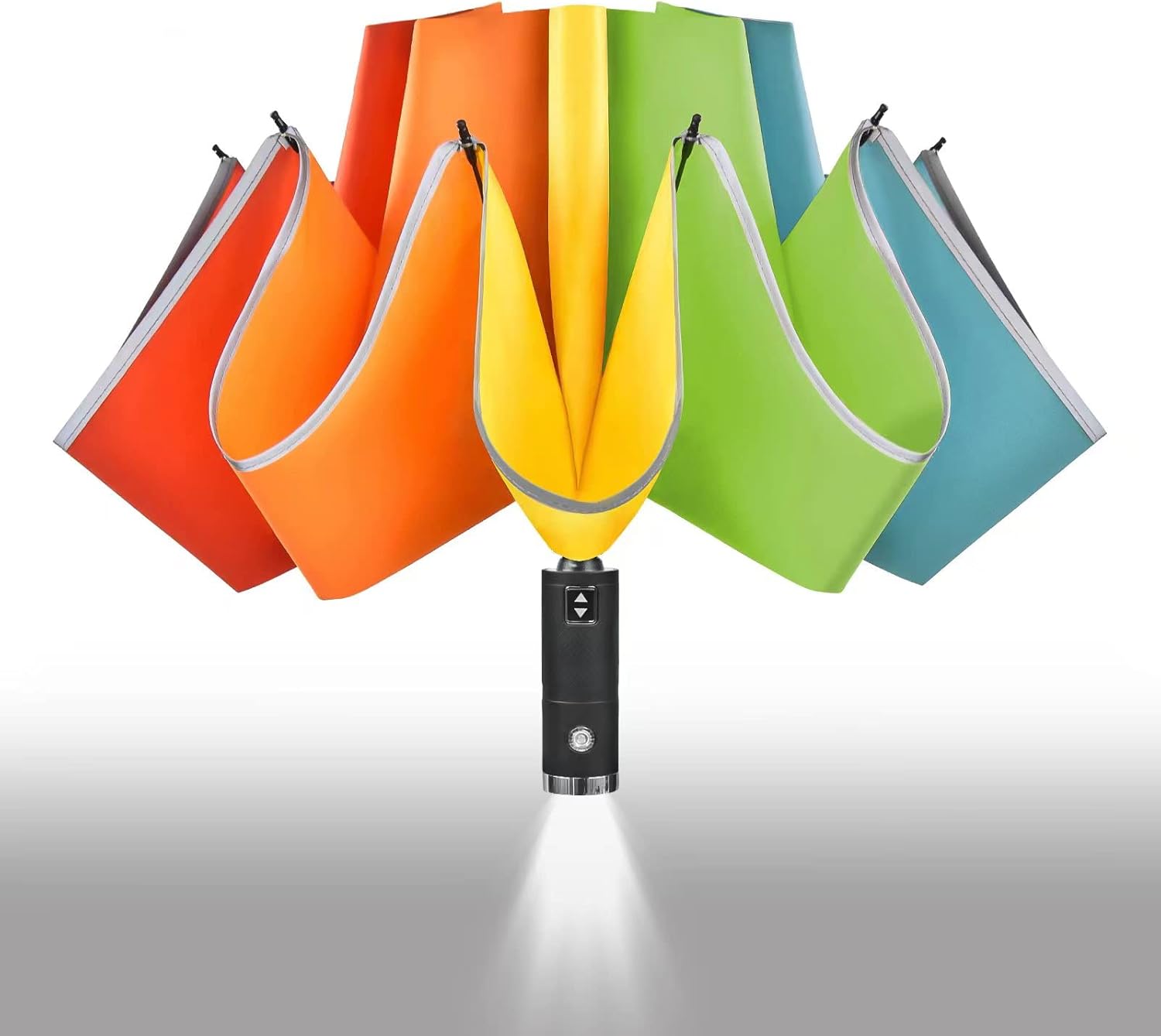 Lejorain Inverted Rainbow LED Umbrella - Folding Reverse Automatic Travel Umbrellas Compact for Rain Windproof Women - Portable Upside Down Collapsible Reflective Umbrella