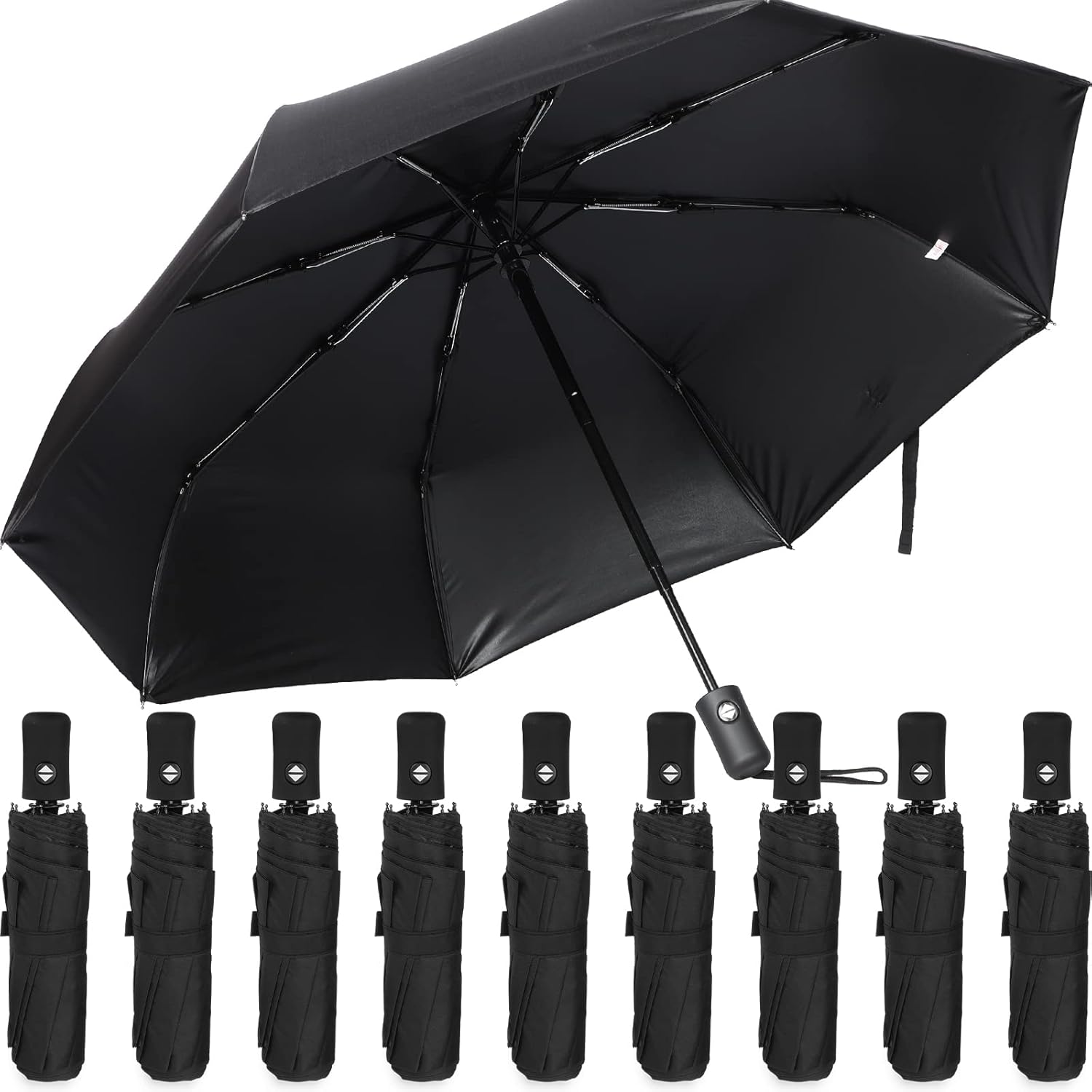 • Package Includes: you will receive 9 pieces of compact umbrellas, equipped with 8 pieces of ribs, feature classic black color, enough quantity will meet your needs for daily use, these compact umbrellas also can be practical gifts for your team, coworkers, family and friends