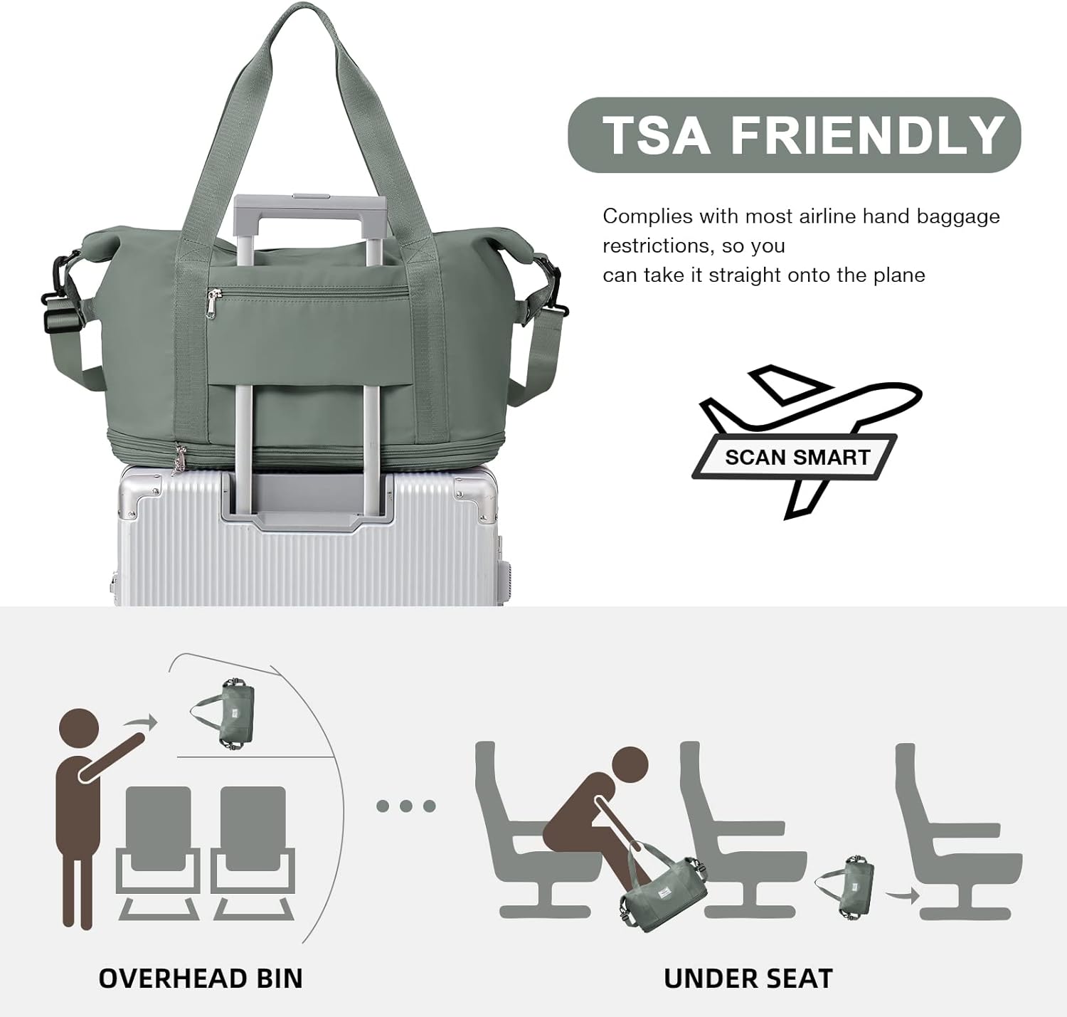 Travel Duffel Bag, Sports Tote Gym Bag, Shoulder Weekender Overnight Bag for Women