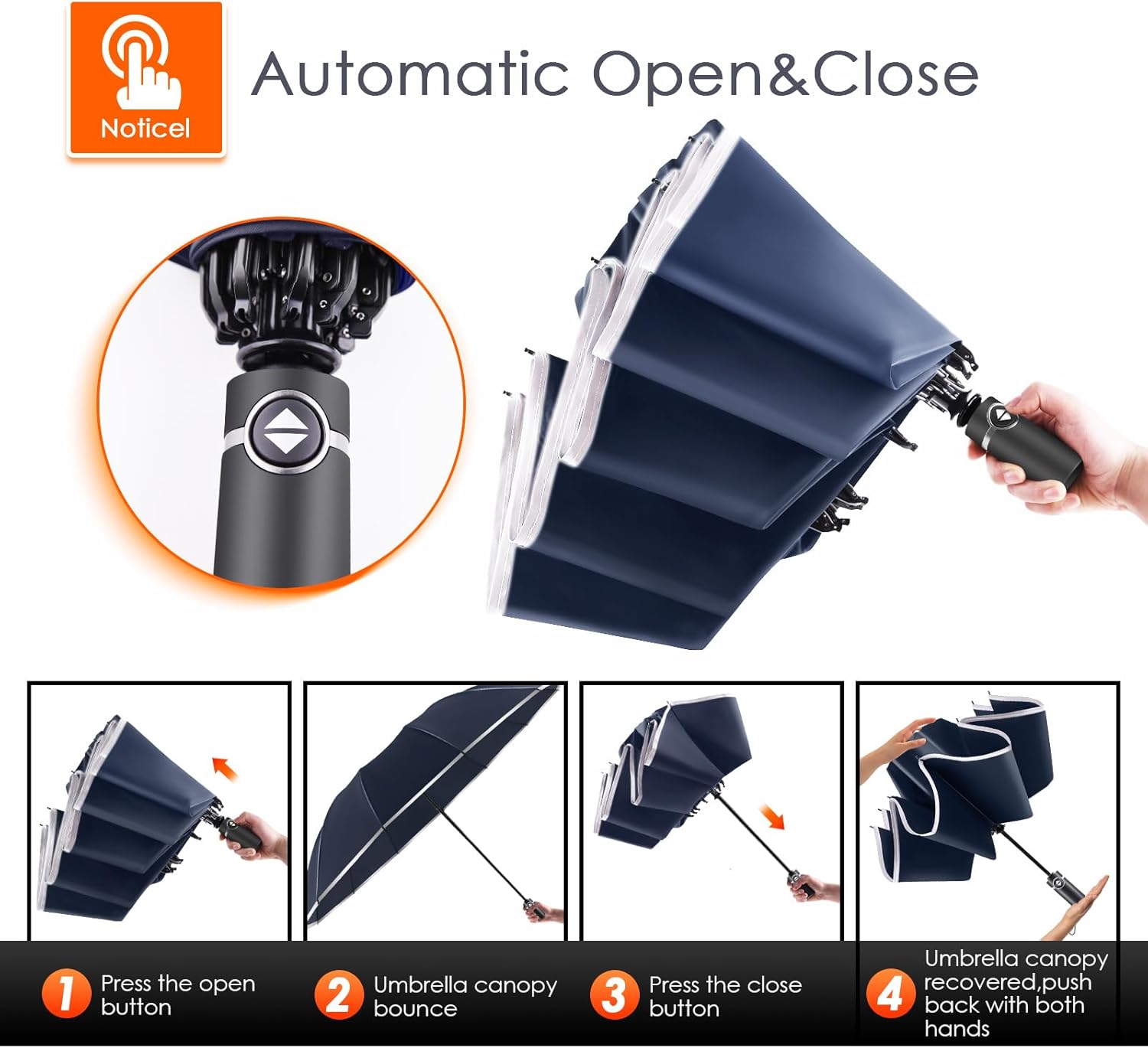 • ☂【Extremely Convenient】Our reverse folding umbrella has a fully automatic system, perfect for one-handed operation. Open or close the umbrella with the push of a button. It is easy to carry without taking up much space and stores in your car, briefcases, backpacks, travel bags, etc... Suitable for women and men, suitable for travel and outdoor activities.